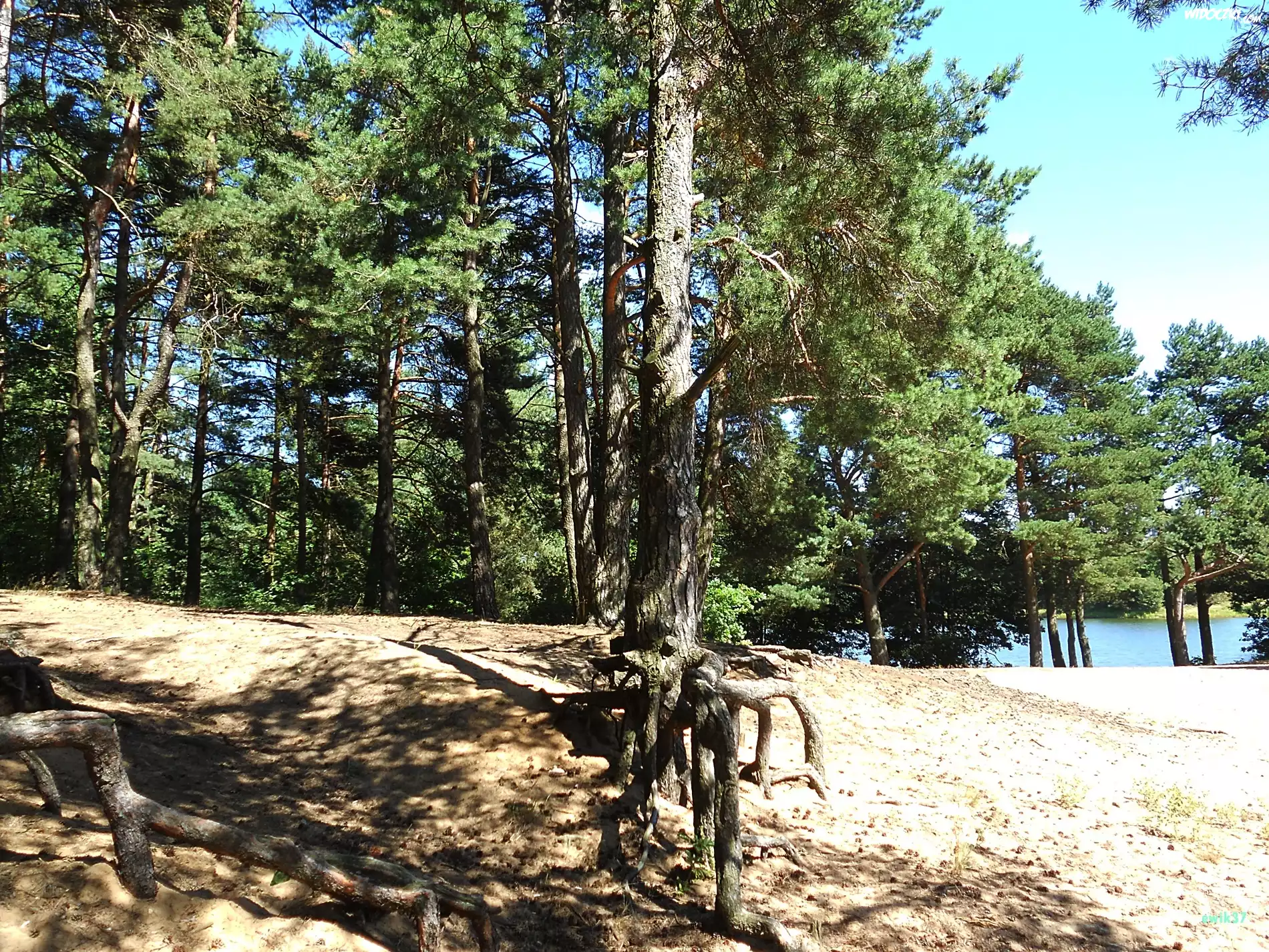 Zdjęcia, Jezioro, Las, Drzewa, Korzenie