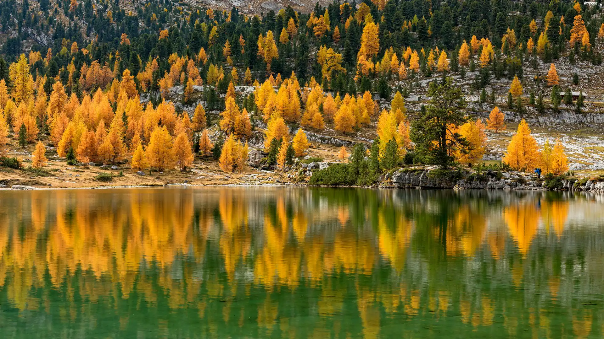 Zdjęcia, Jezioro, Odbicie, Las, Drzewa, Jesień