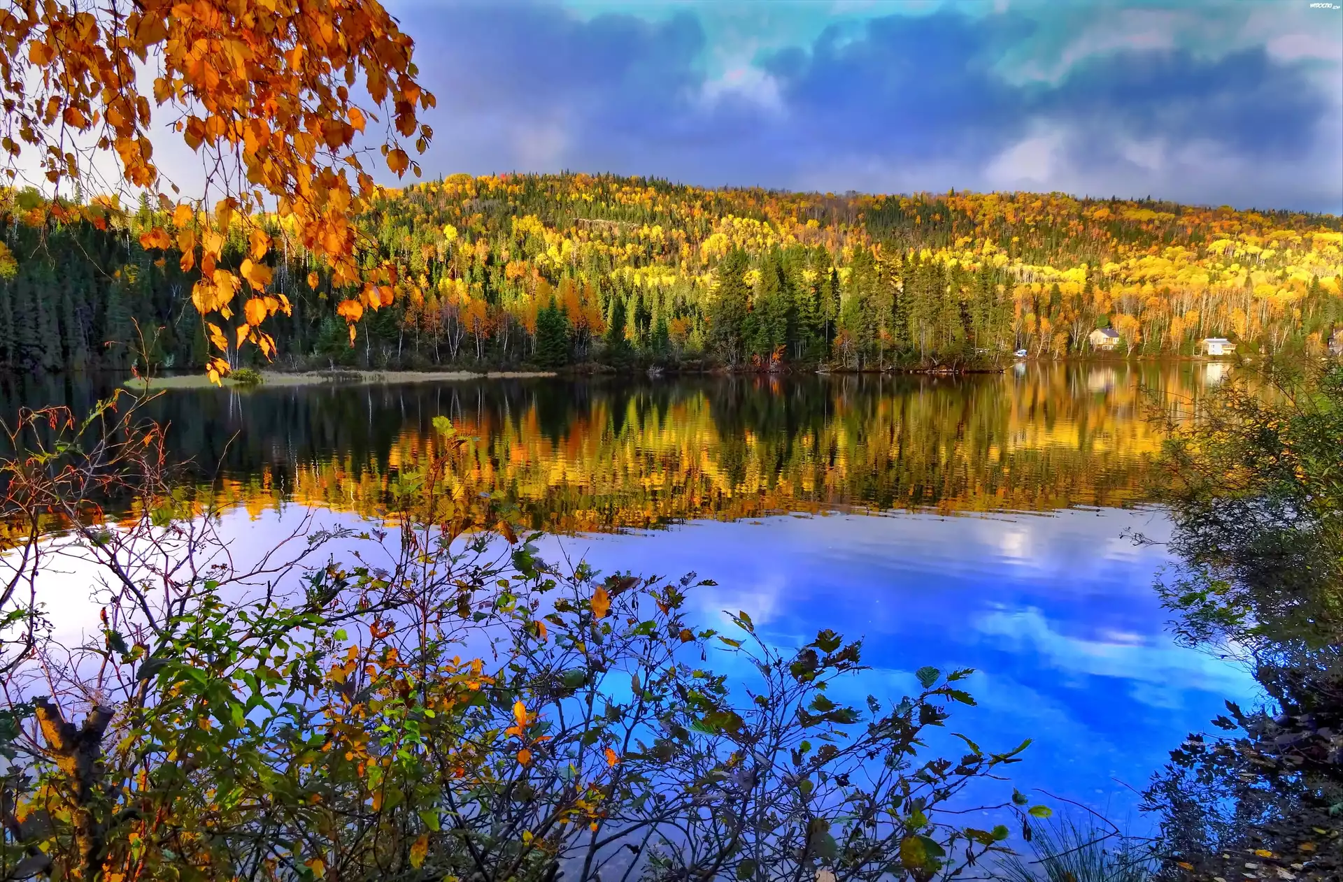Jezioro, Kolorowy, Las, Odbicie, Drzewa, Liście