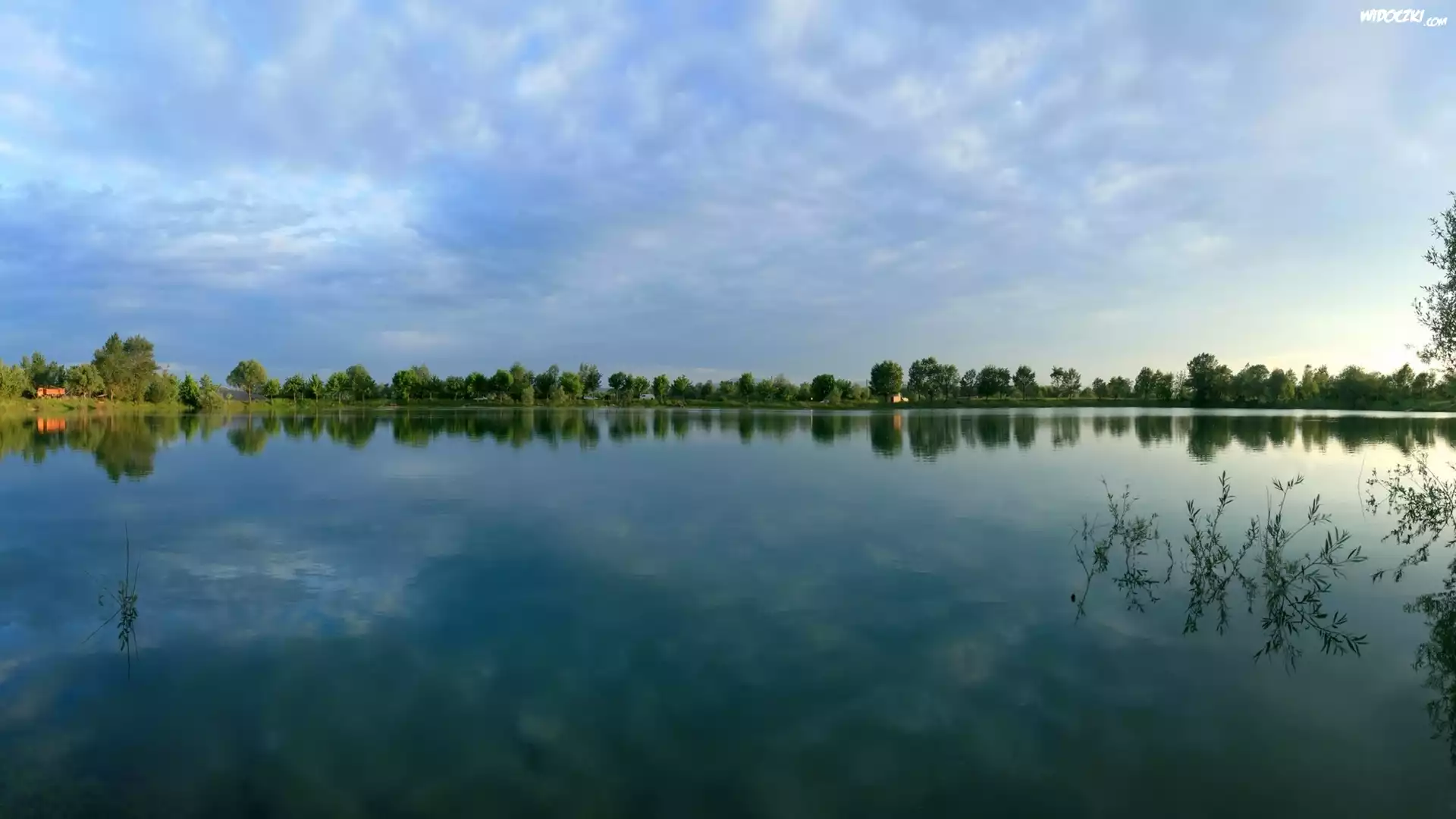 Zdjęcia, Jezioro, Las, Drzewa, Rośliny