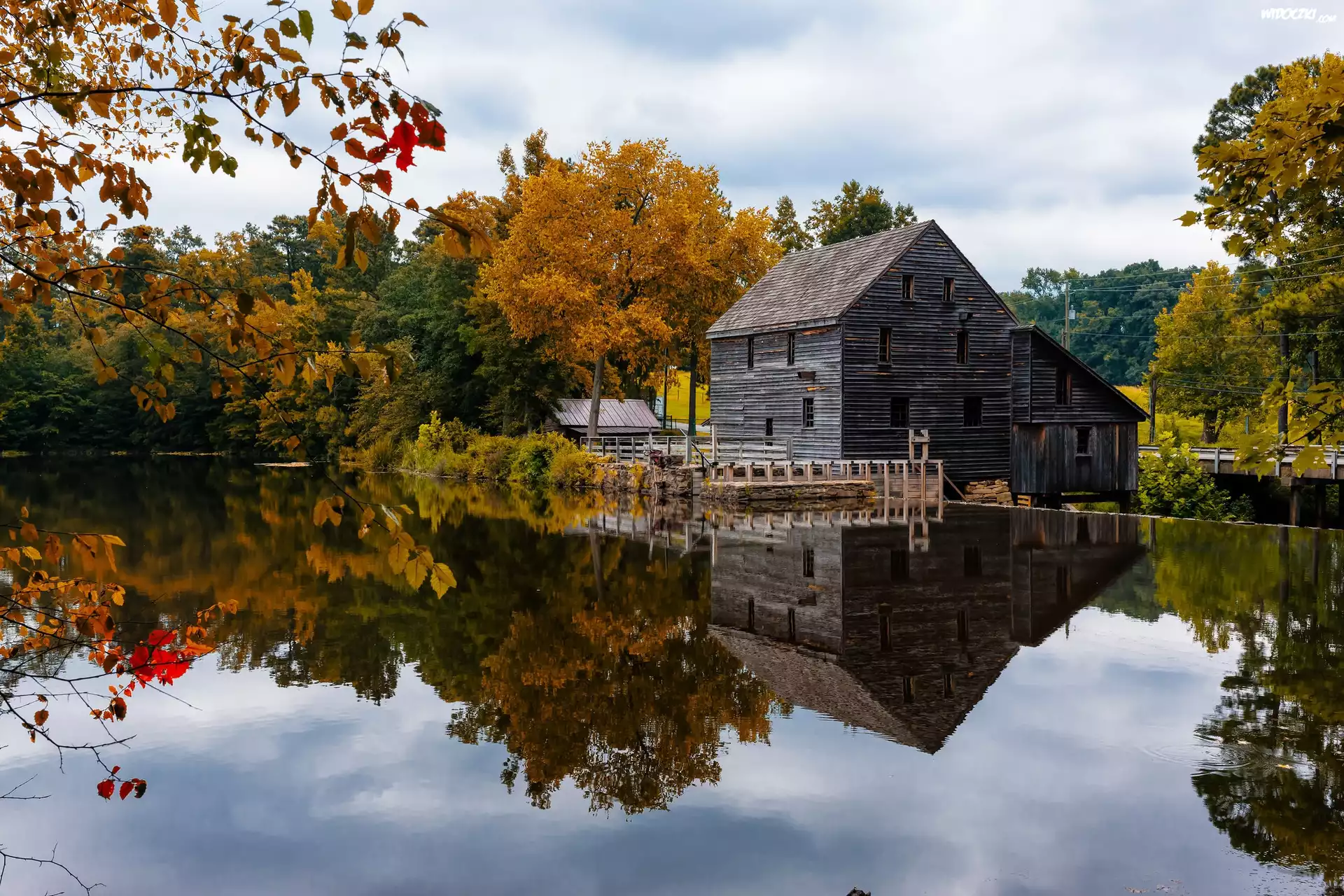 Zdjęcia, Jezioro, Las, Niebo, Drzewa,Chata