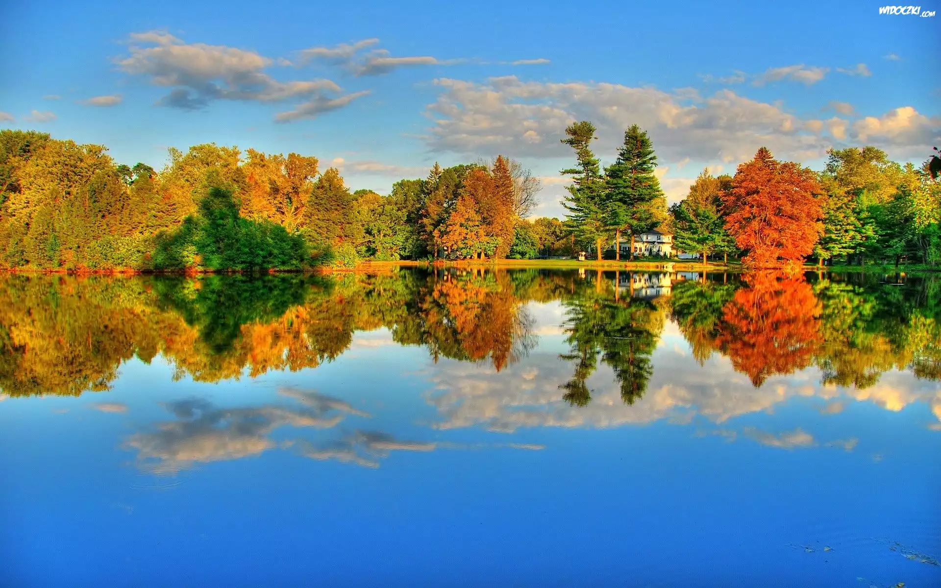 Zdjęcia, Drzewa, Jezioro, Odbicie