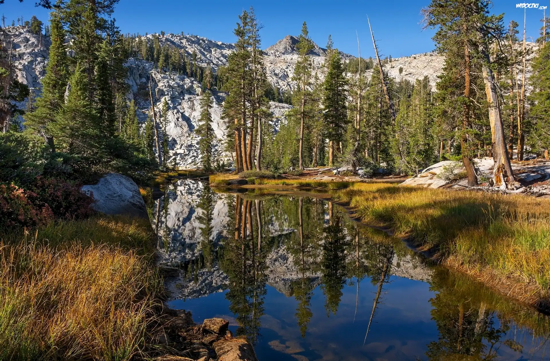 Zdjęcia, Jezioro, Góry, Odbicie, Drzewa, Świerki