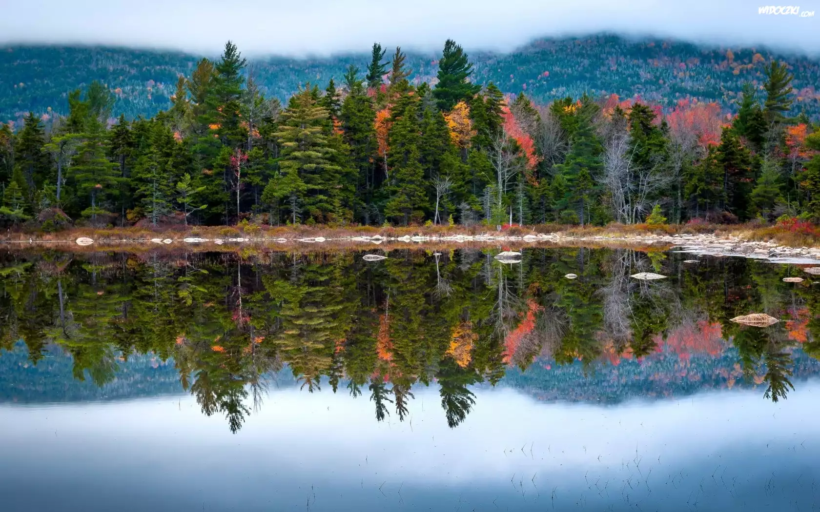 Zdjęcia, Drzewa, Jezioro, Odbicie