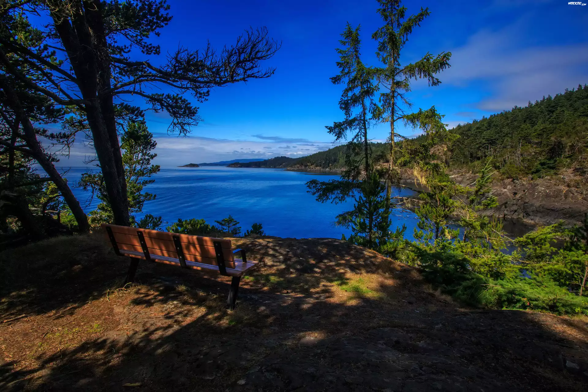 Zdjęcia, Jezioro, Ławka, Park, Drzewa, Kanada