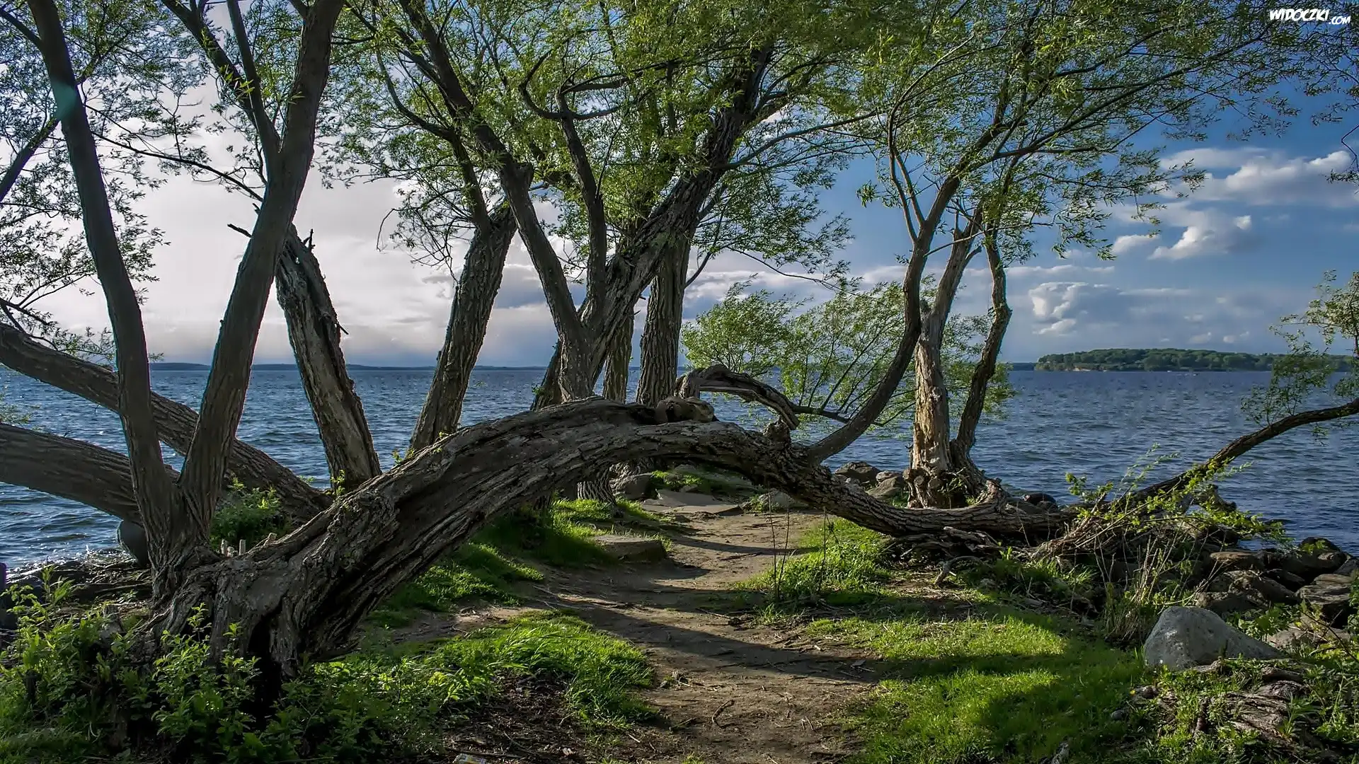Zdjęcia, Jezioro, Pochylone, Drzewa, Ścieżka