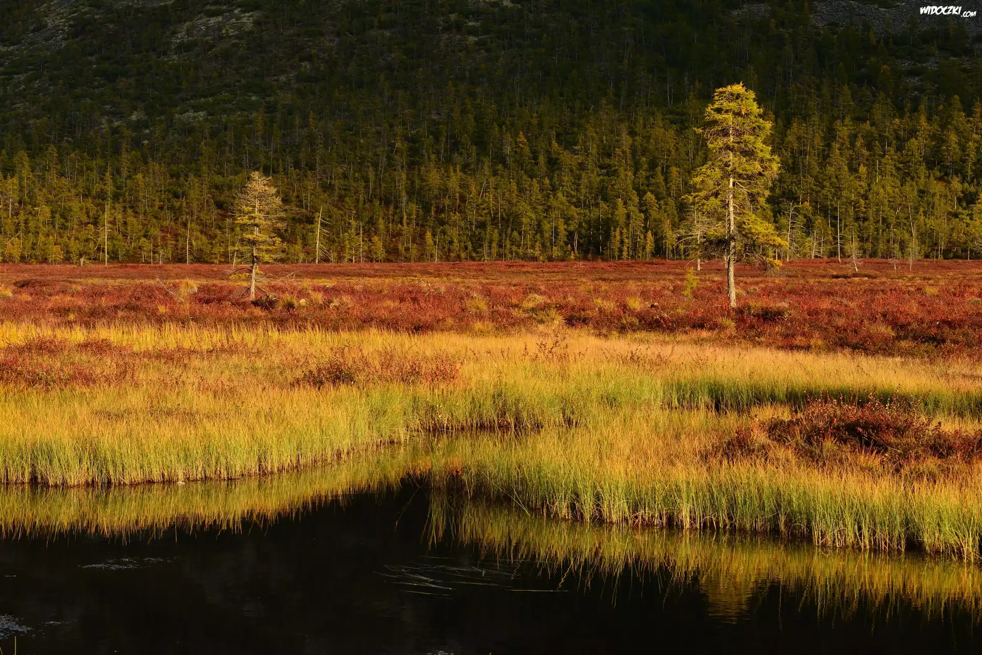 Drzewa, Las, Rzeka, Trawa, Brzeg, Jezioro Jack London, Kołyma, Obwód magadański, Rosja