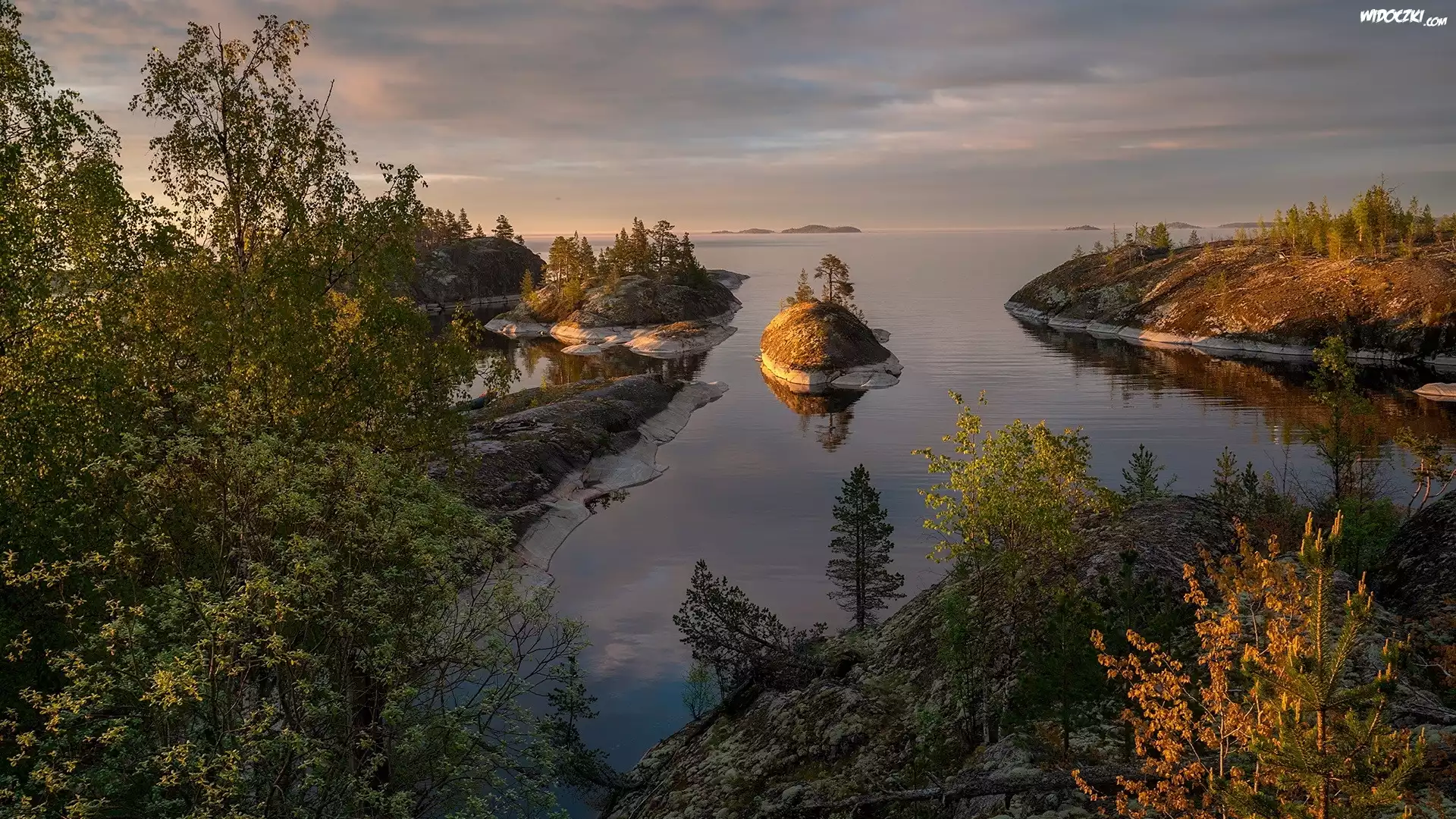 Zdjęcia, Jezioro Ładoga, Skały, Wysepki, Drzewa, Rosja