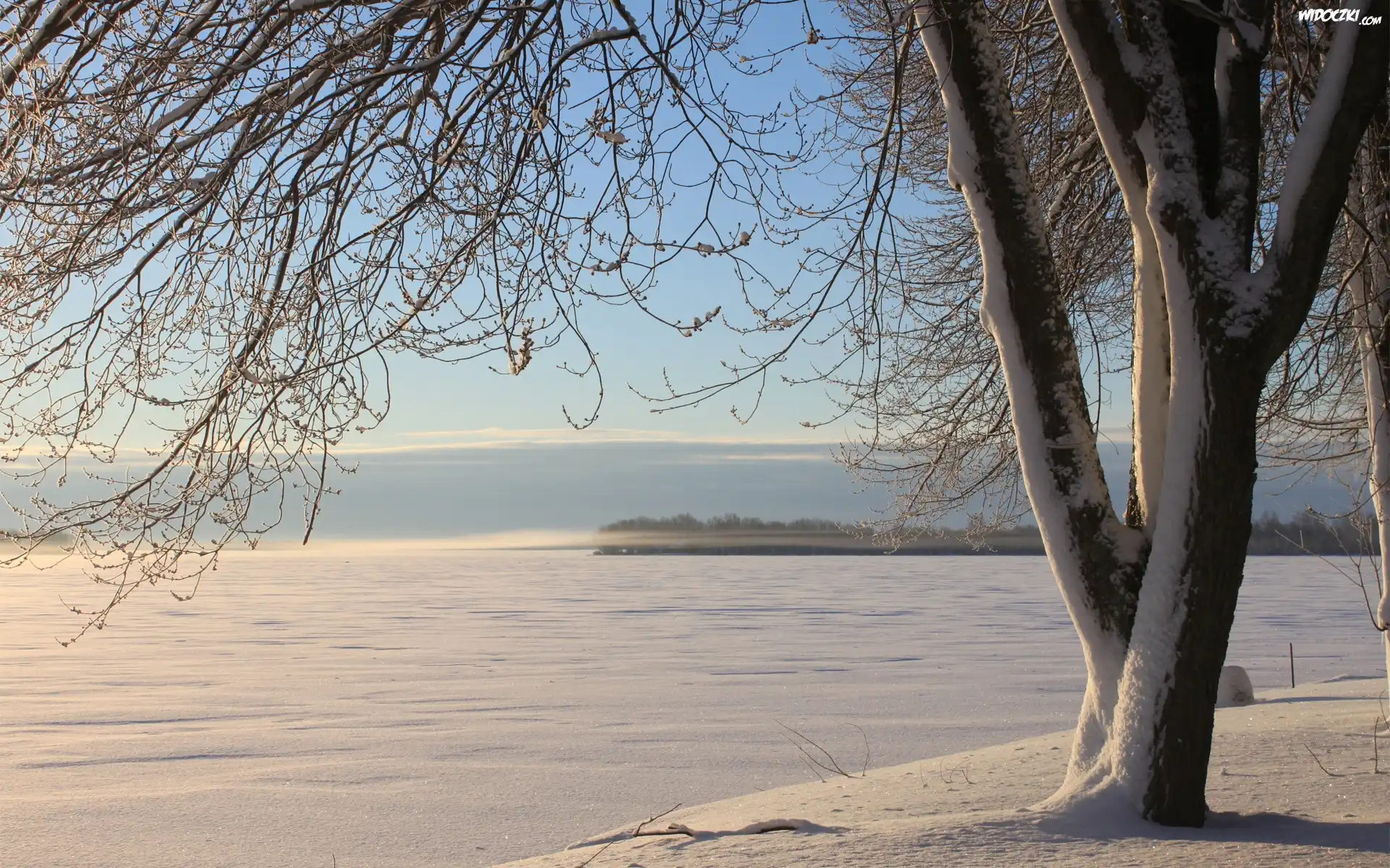 Zdj臋cia, Drzewo, Jezioro, Zima