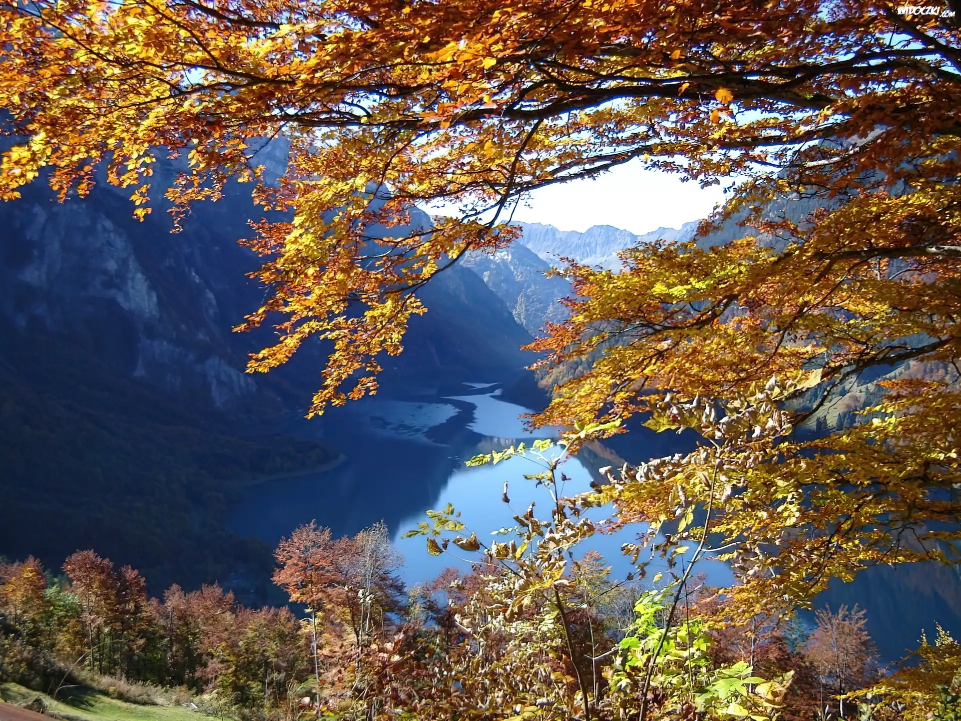Zdjęcia, Jezioro, Góry, Gałęzie, Glarus, Szwajcaria