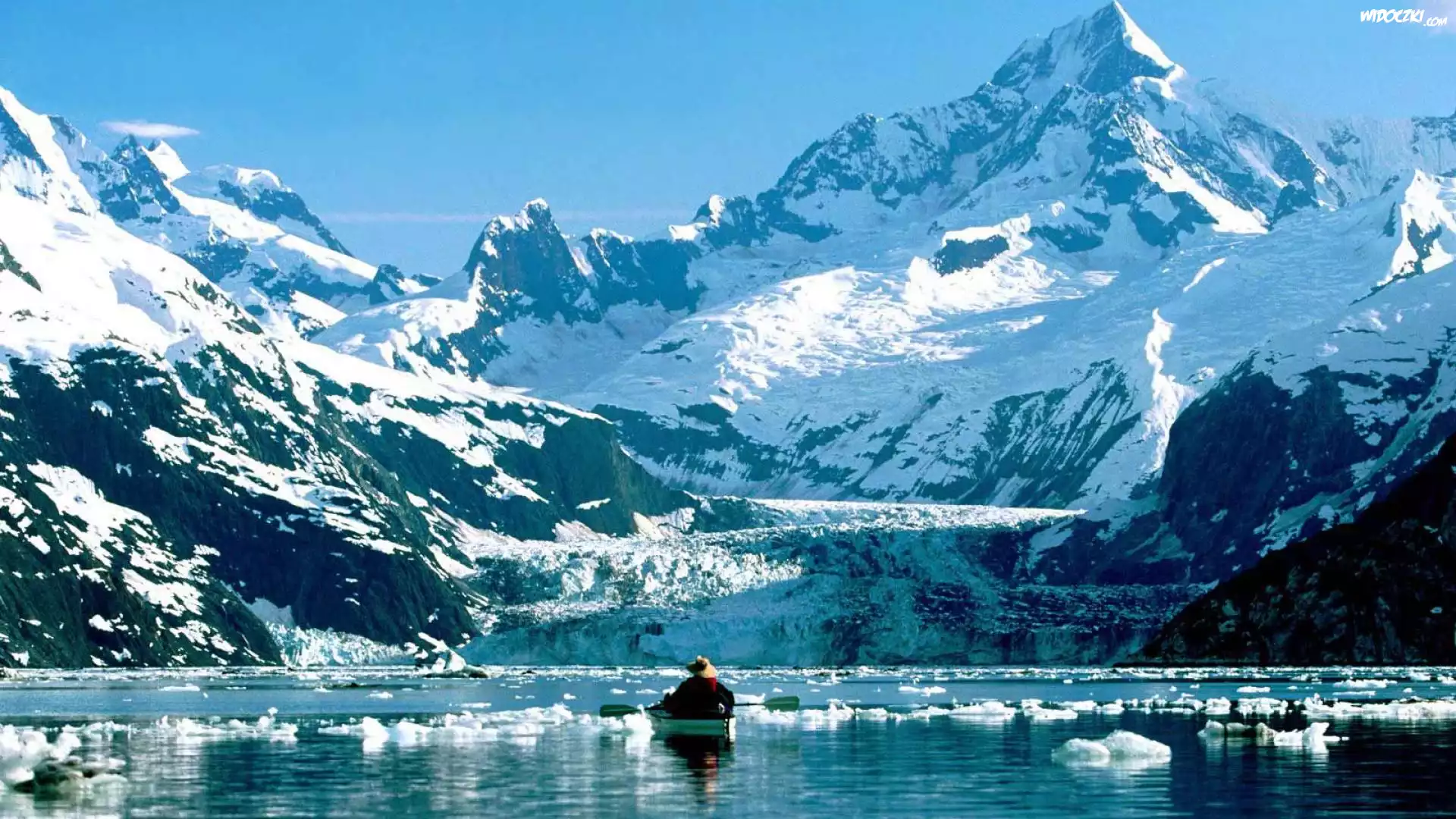 Zdjęcia, Jezioro, Ośnieżone, Szczyty, Górskie, Łódka