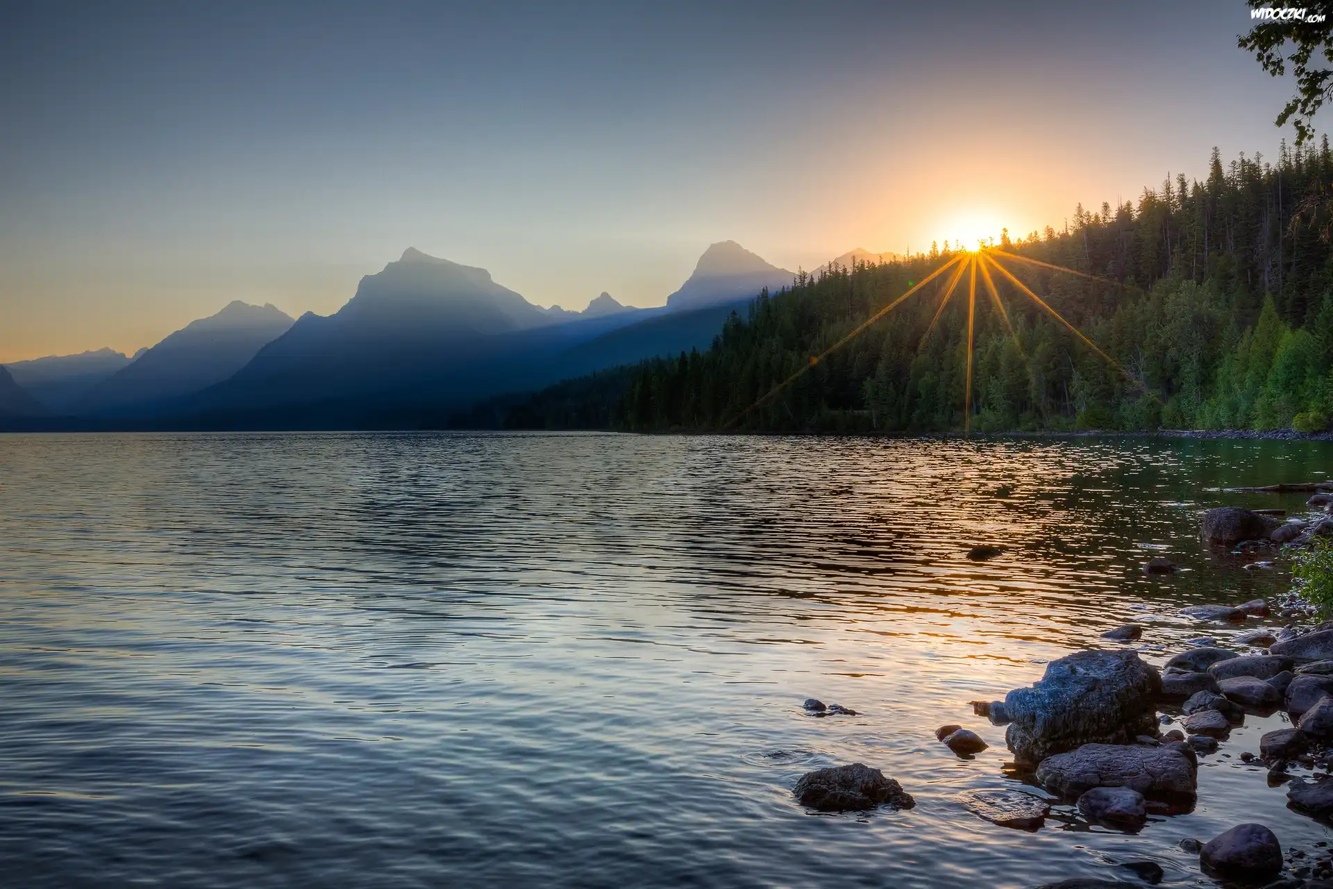 Las, Promienie, Wschodzącego, Słońca, Mgła Drzewa, Choinki Drzewa, Las, Promienie, Słońca Morze, Kamienie, Horyzont Kartonowy, Ludek, Danbo, Kwiatek Jezioro, Mgła, Drzewa Zima, Drzewa, Słońce Góry, Jezioro, Niebo Liście, Kamień Zachód Słońca, Chmura, Jezioro Góra Morze, Fale, Kamienie Jesień, Rzeka, Kamienie, Las Góra