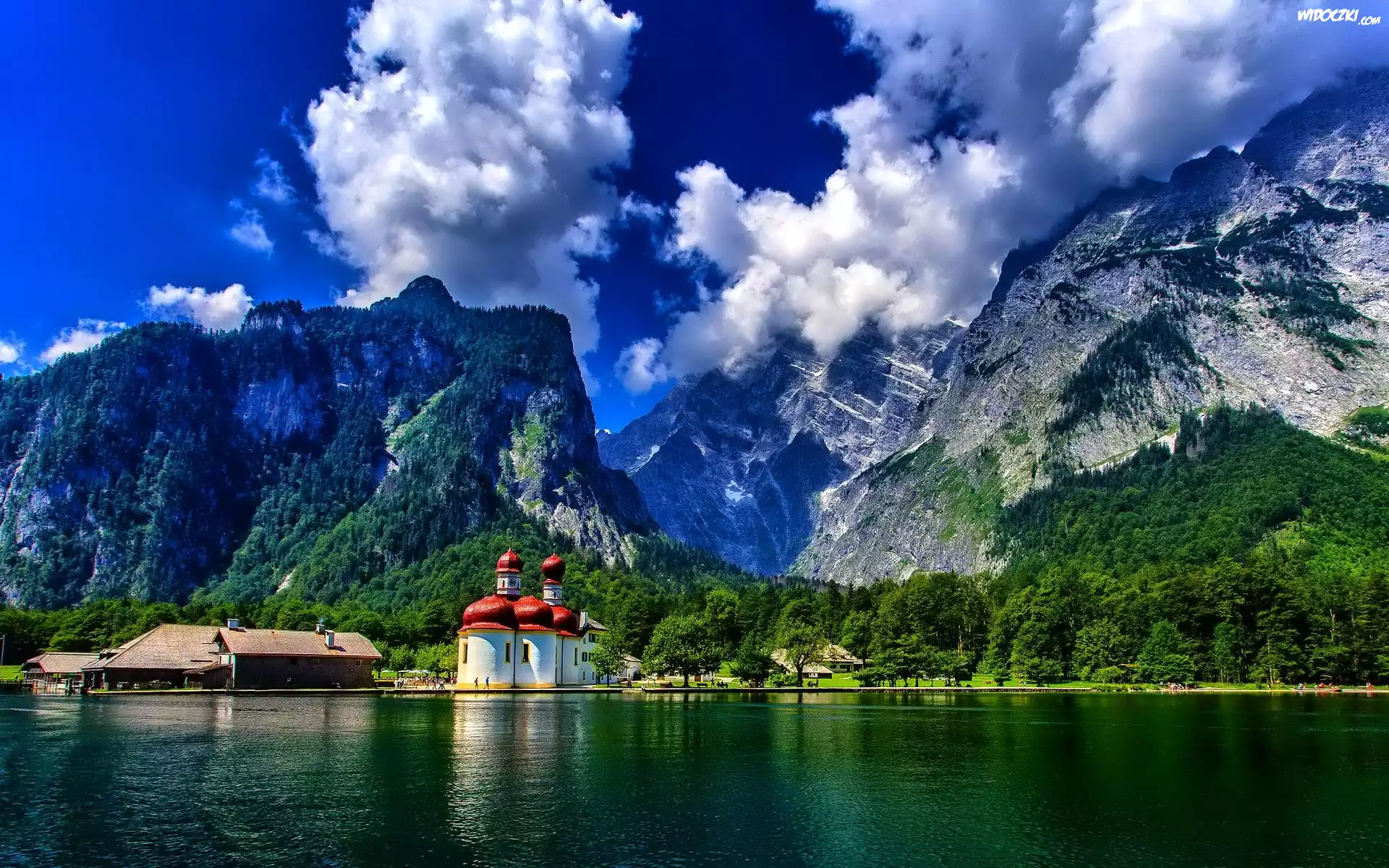 Zdjęcia, Góry, Jezioro, Koenigssee, Kościół, Św.Bartłomieja, Bawaria