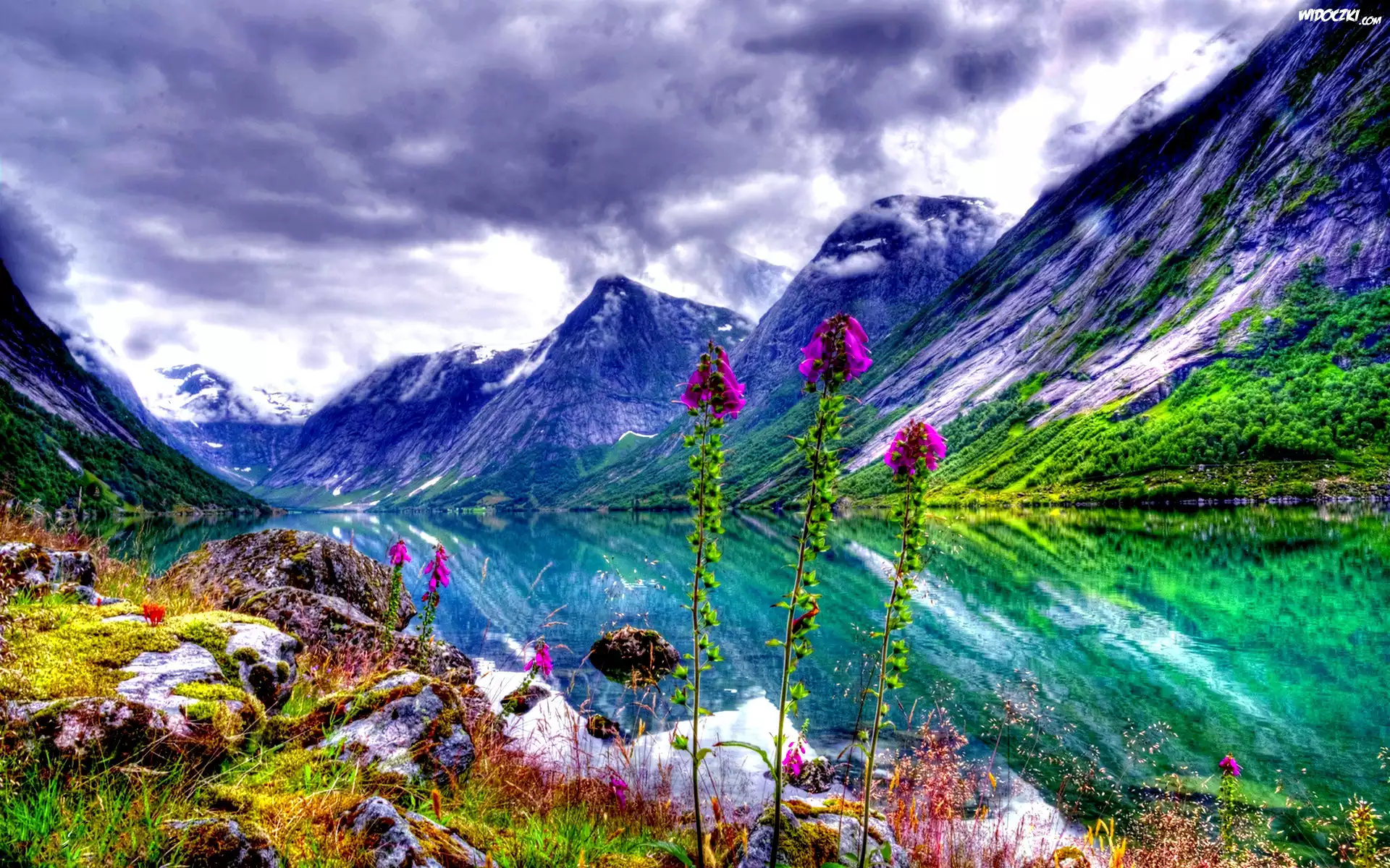 Zdjęcia, Góry, Jezioro, Chmury