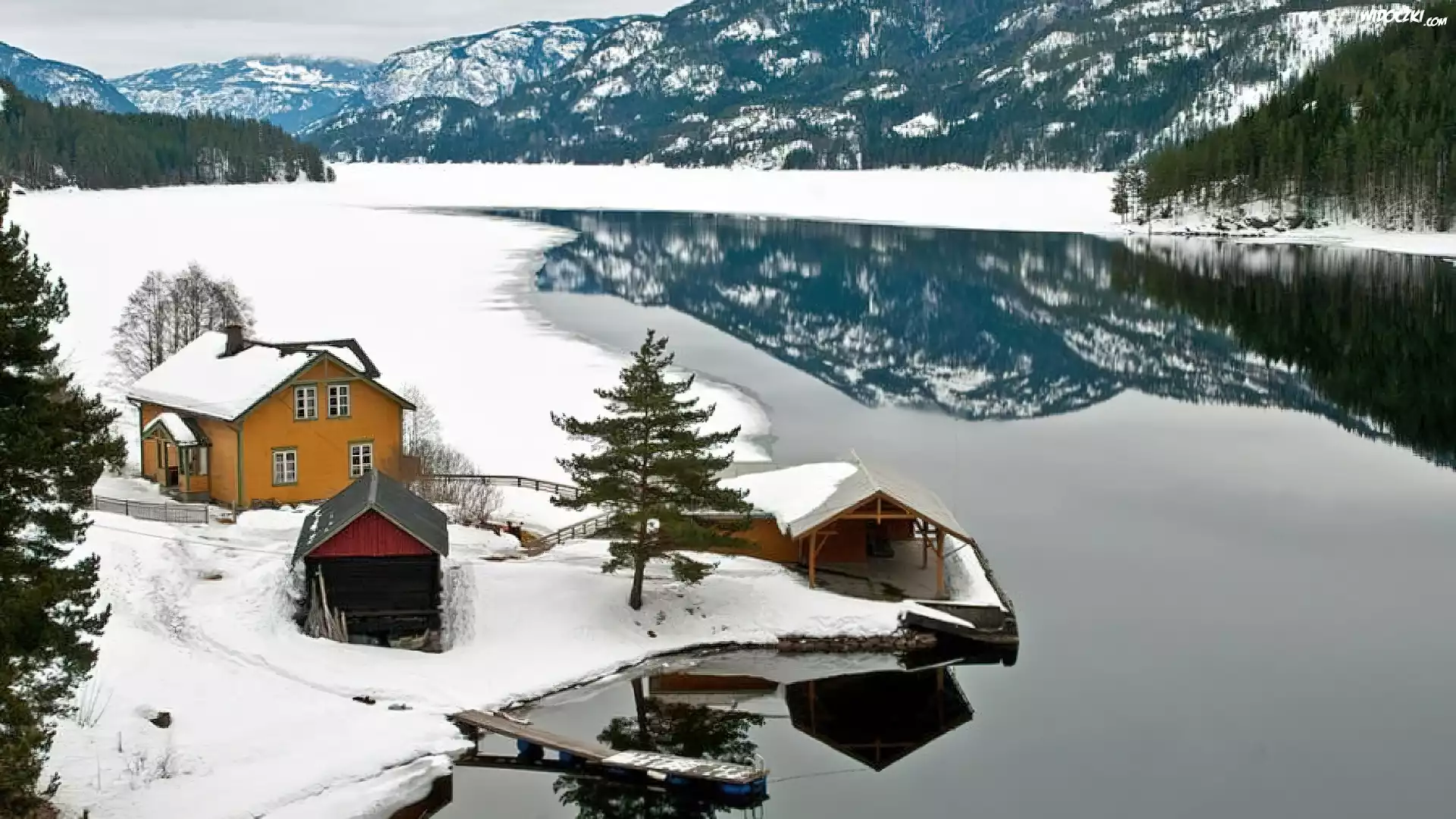 Zdjęcia, Góry, Jezioro, Domek