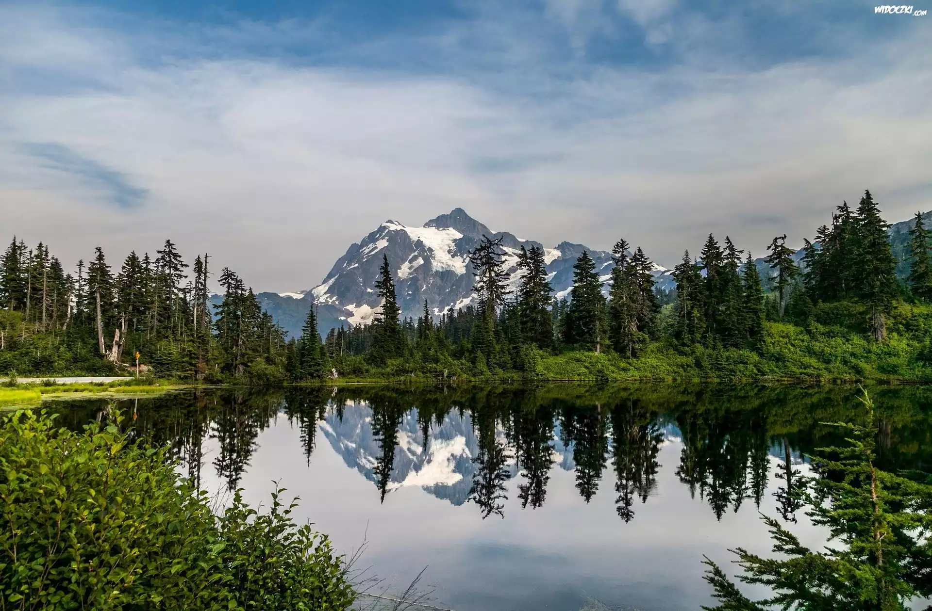 Zdjęcia, Jezioro, Drzewa, Góry, Odbicie