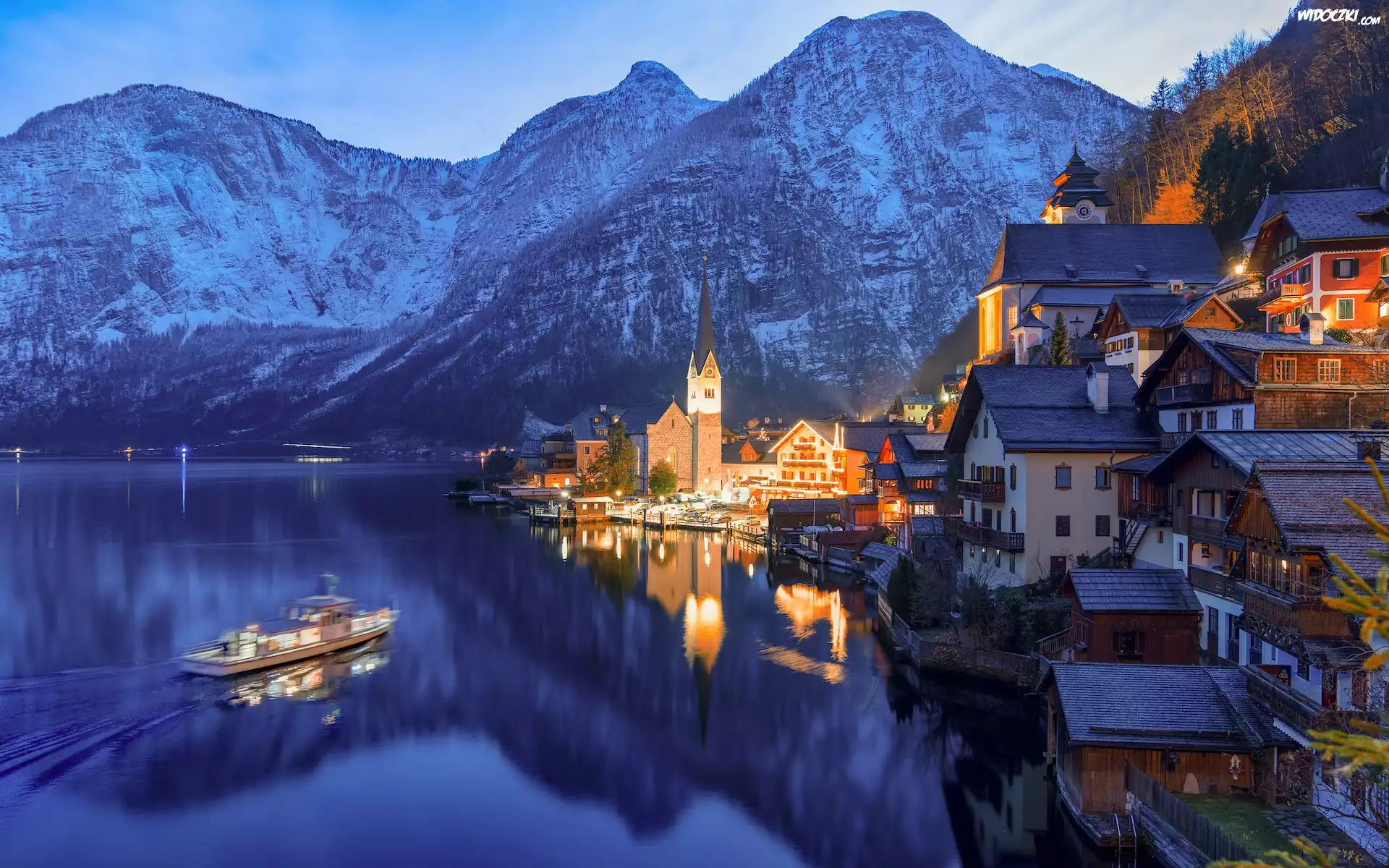 Zdjęcia, Austria, Hallstatt, Góry, Jezioro, Hallstattersee, Domy, Kościół