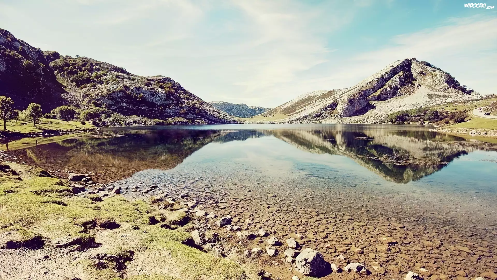 Przejrzysta Woda, Fala, Niebo, Góra Kamienie, Morze Góra Góra, Niebo, Księżyc Rzeka, Kamienie Góra Kamienie, Woda, Liście Tęcza, Morze, Skały, Kamienie Woda, Kamienie, Las Góra Pomost, Jezioro, Góry, Leżaki,  Wakacje Kanada, Jezioro, Las Góry, Kamienie, Niebo, Fale Góra, Zachody Śłońca