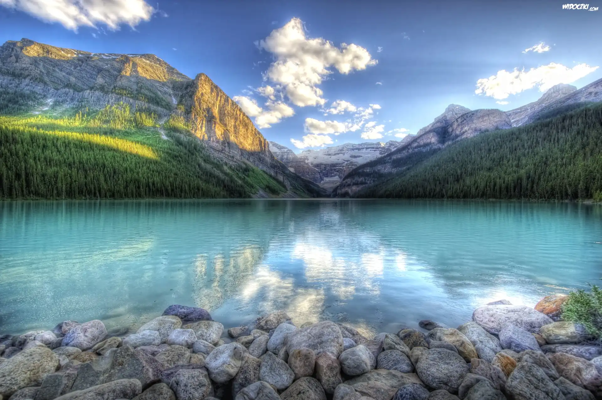 Góry, Jezioro, Palmy Góry, Jezioro, Niebo Klif, Jezioro Góra, Jeziora, Niebo Góra, Zachód Słońca Jezioro, Brzeg, Kamienie Góra Woda, Gałęzie, Liście Góra, Drewniana chatka Góra, Niebo, Księżyc Góra, Niebo Góry, Jezioro, Zachód, Słońca Góra, Zima Jezioro, Pomost, Pioruny