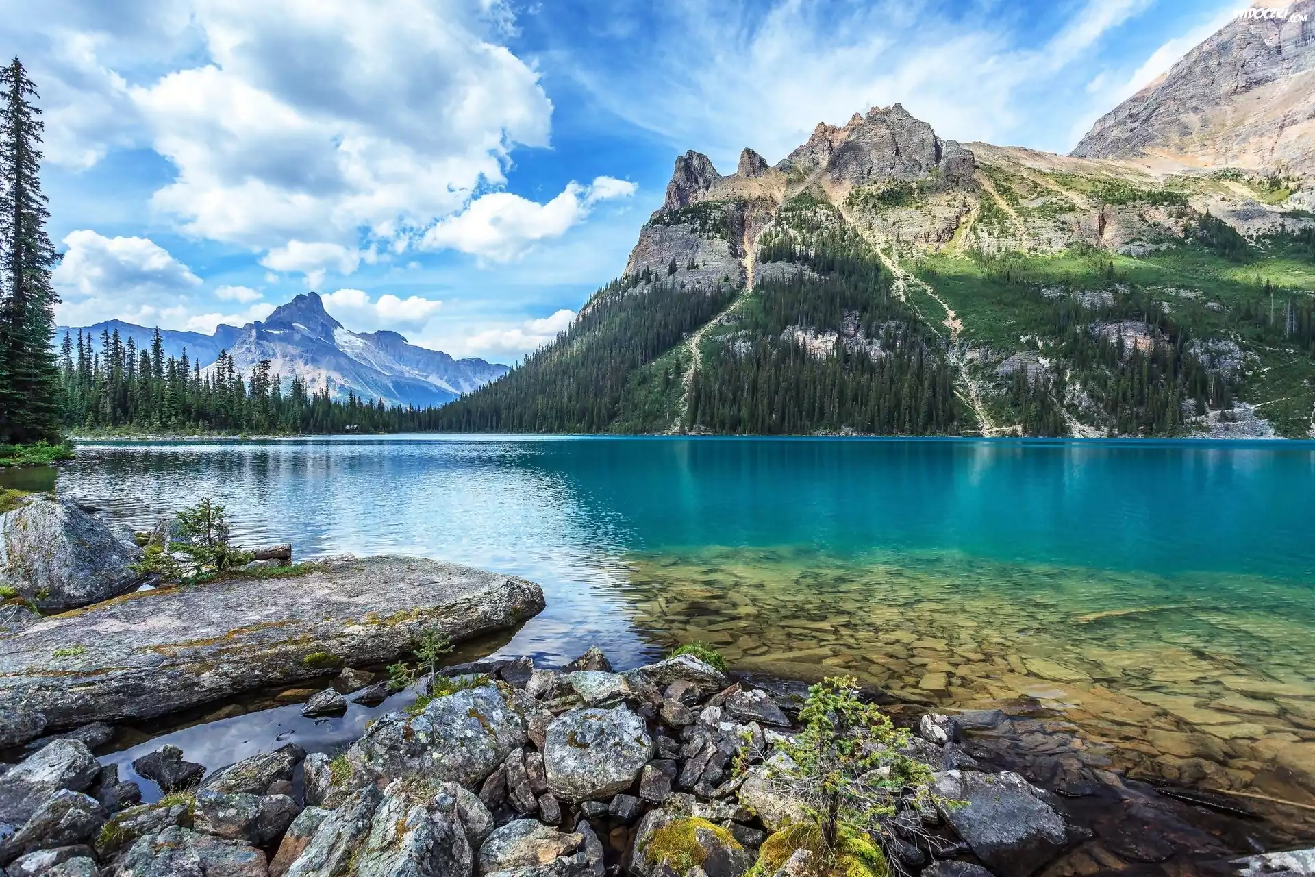 Zdjęcia, Jezioro, Kamienie, Góry, Chmury