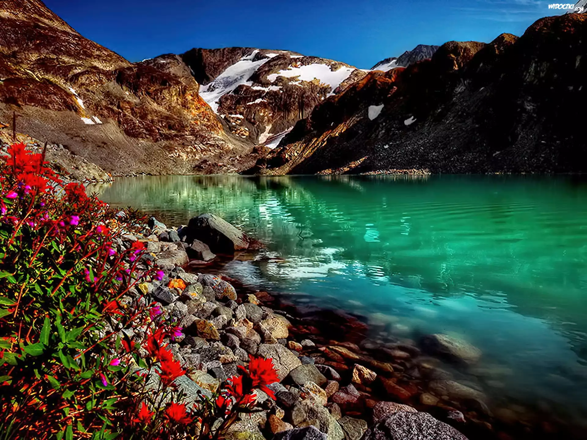 Zdjęcia, Góry, Jezioro, Kwiaty