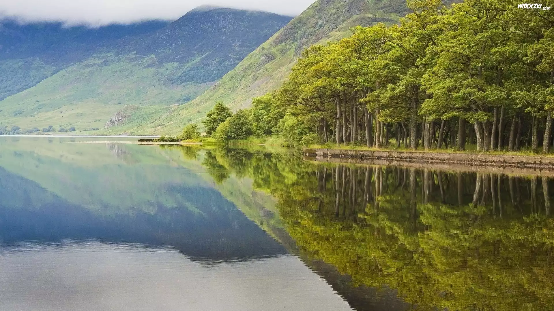 Zdjęcia, Jezioro, Las, Góry, Chmury