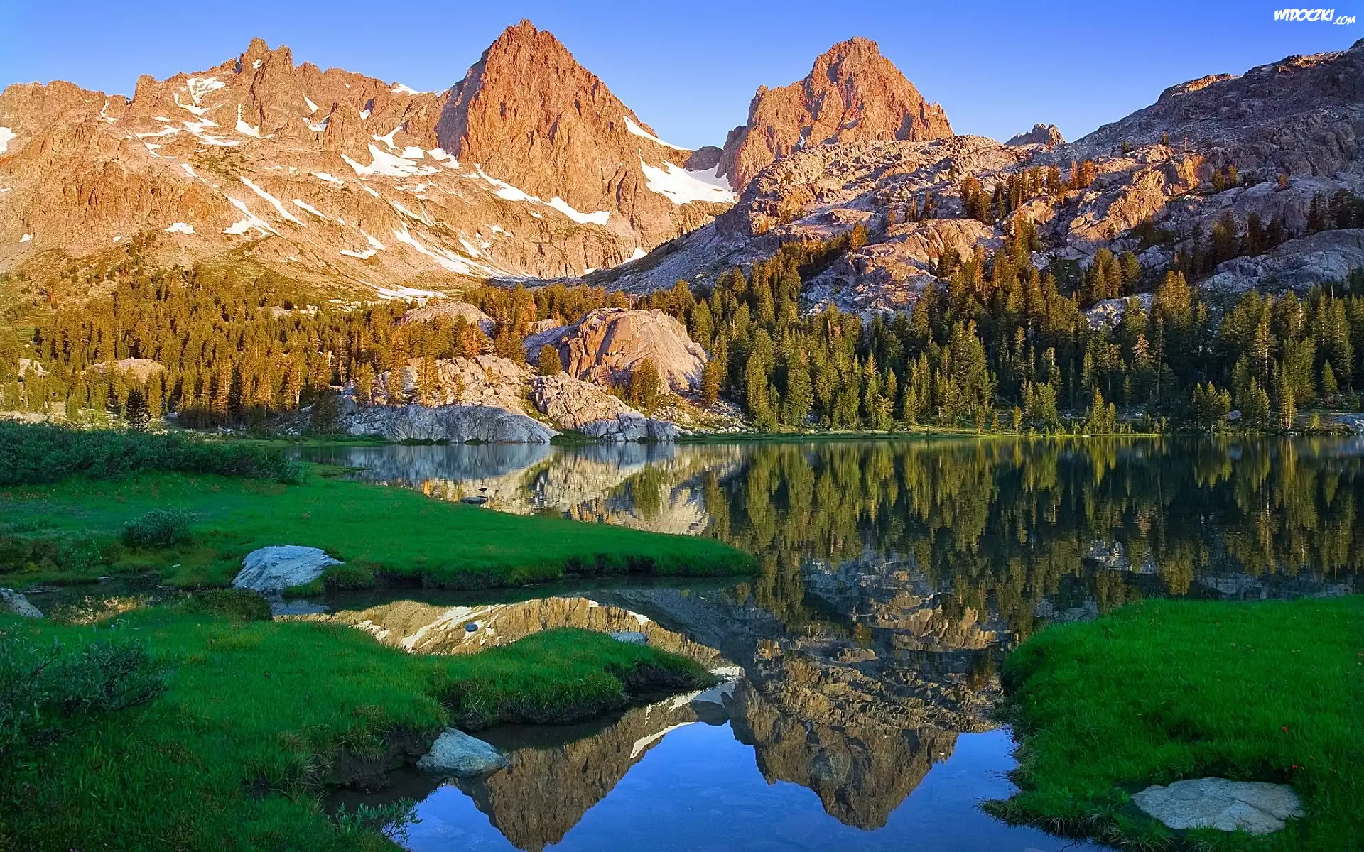 Zdjęcia, Jezioro, Las, Góry, Odbicie