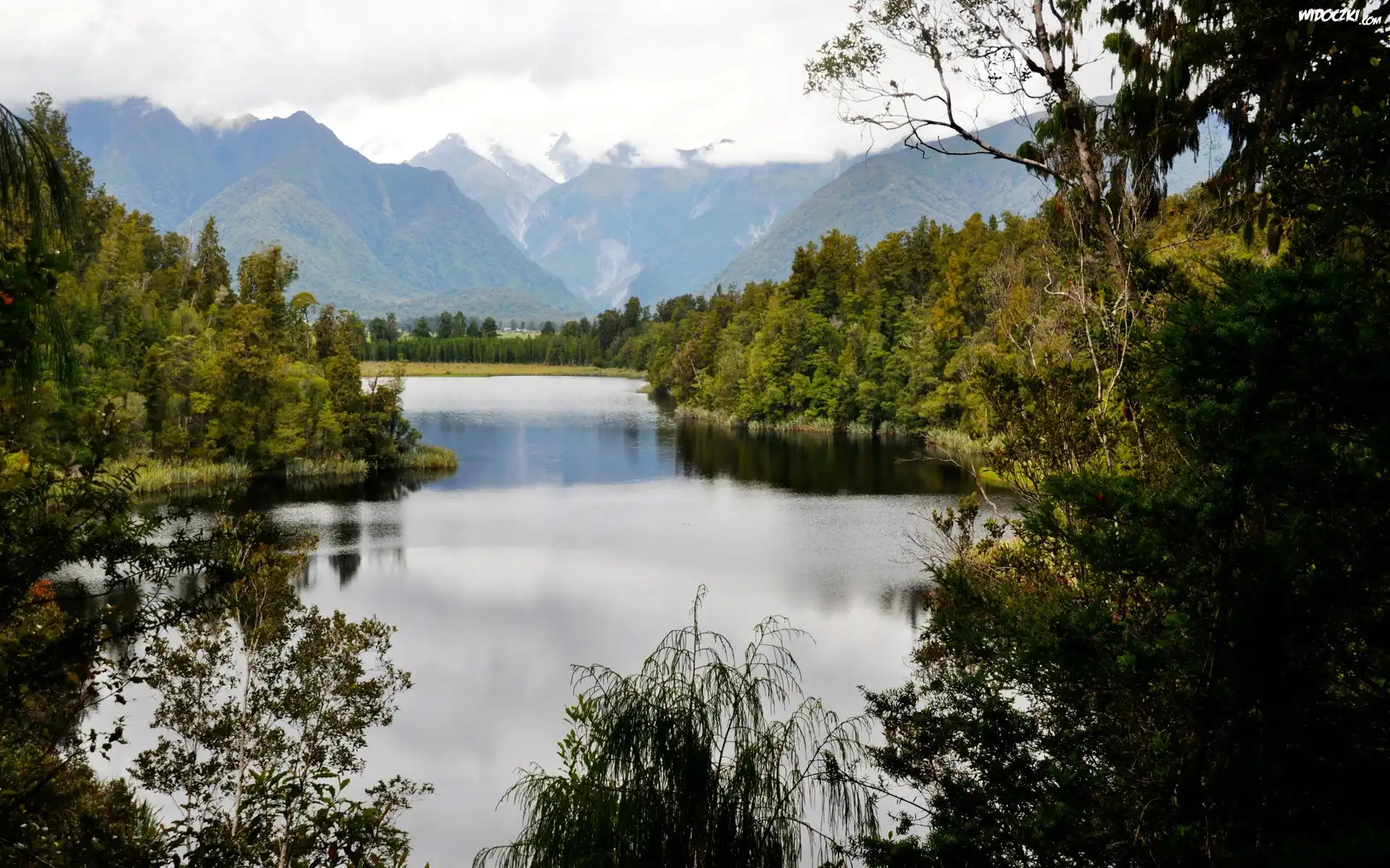 Zdjęcia, Jezioro, Lasy, Góry, Chmury