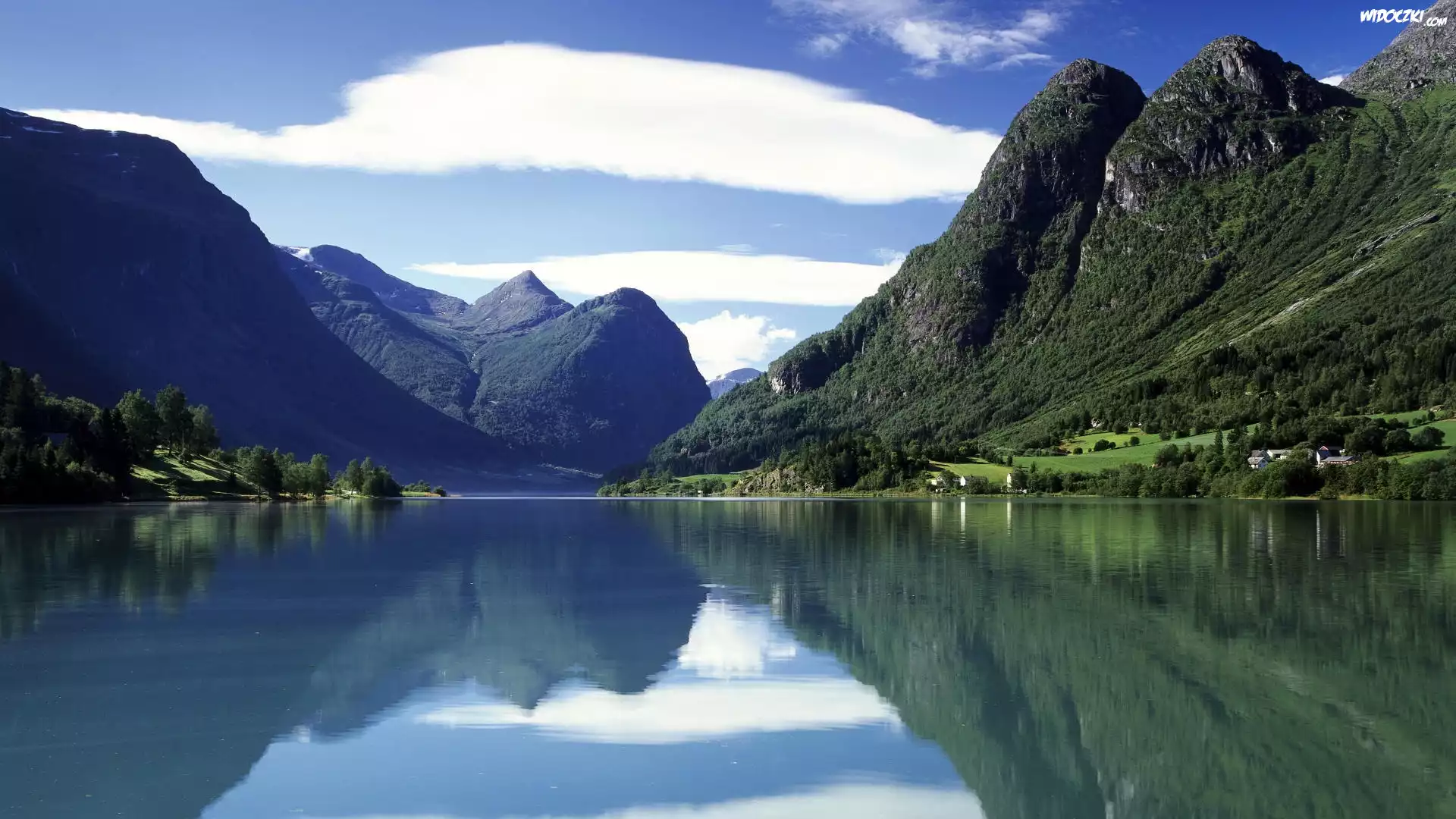 Zdjęcia, Jezioro, Oldenvatnet, Góry, Las