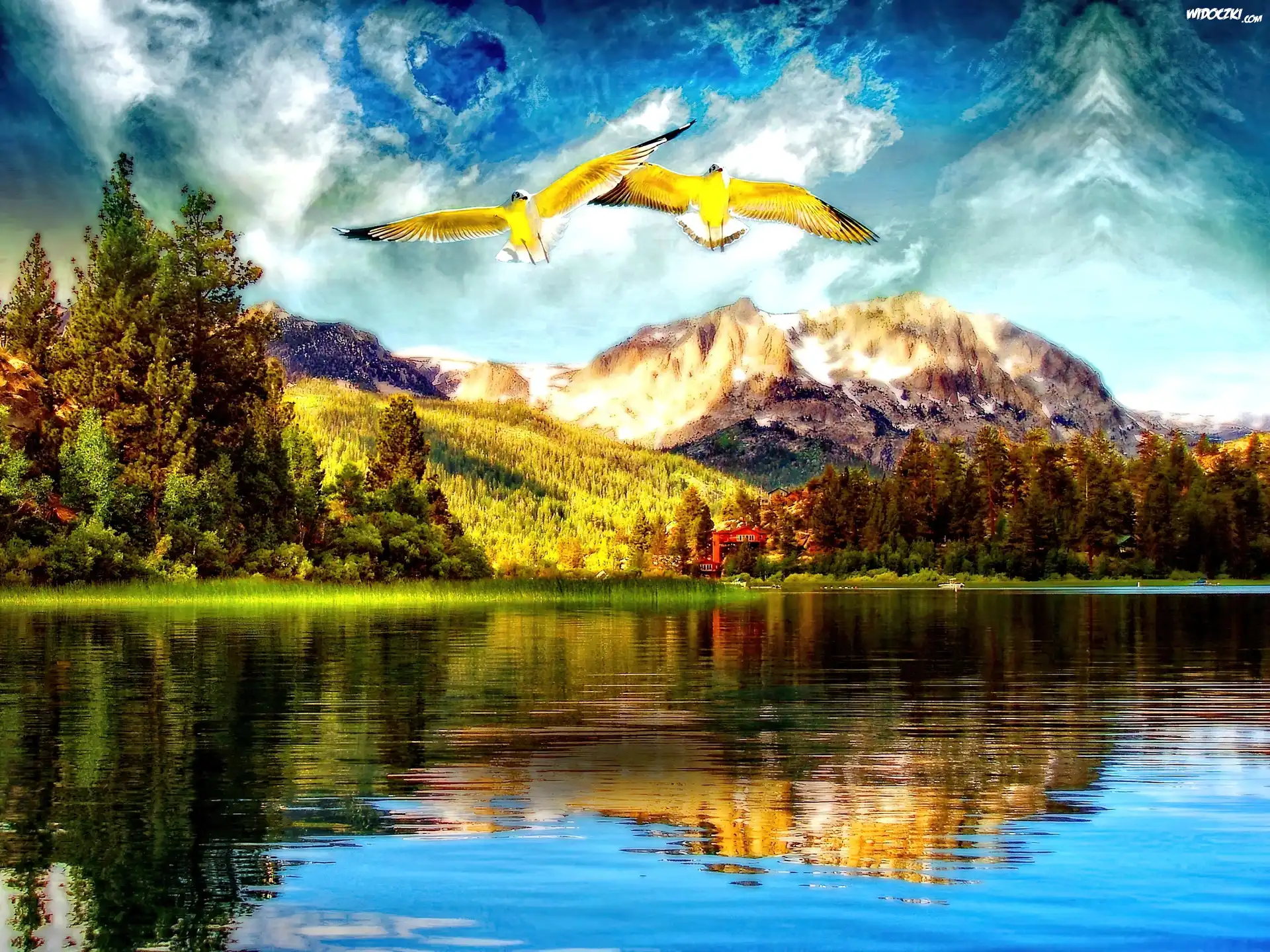 Zdjęcia, Góry, Jezioro, Ptaki