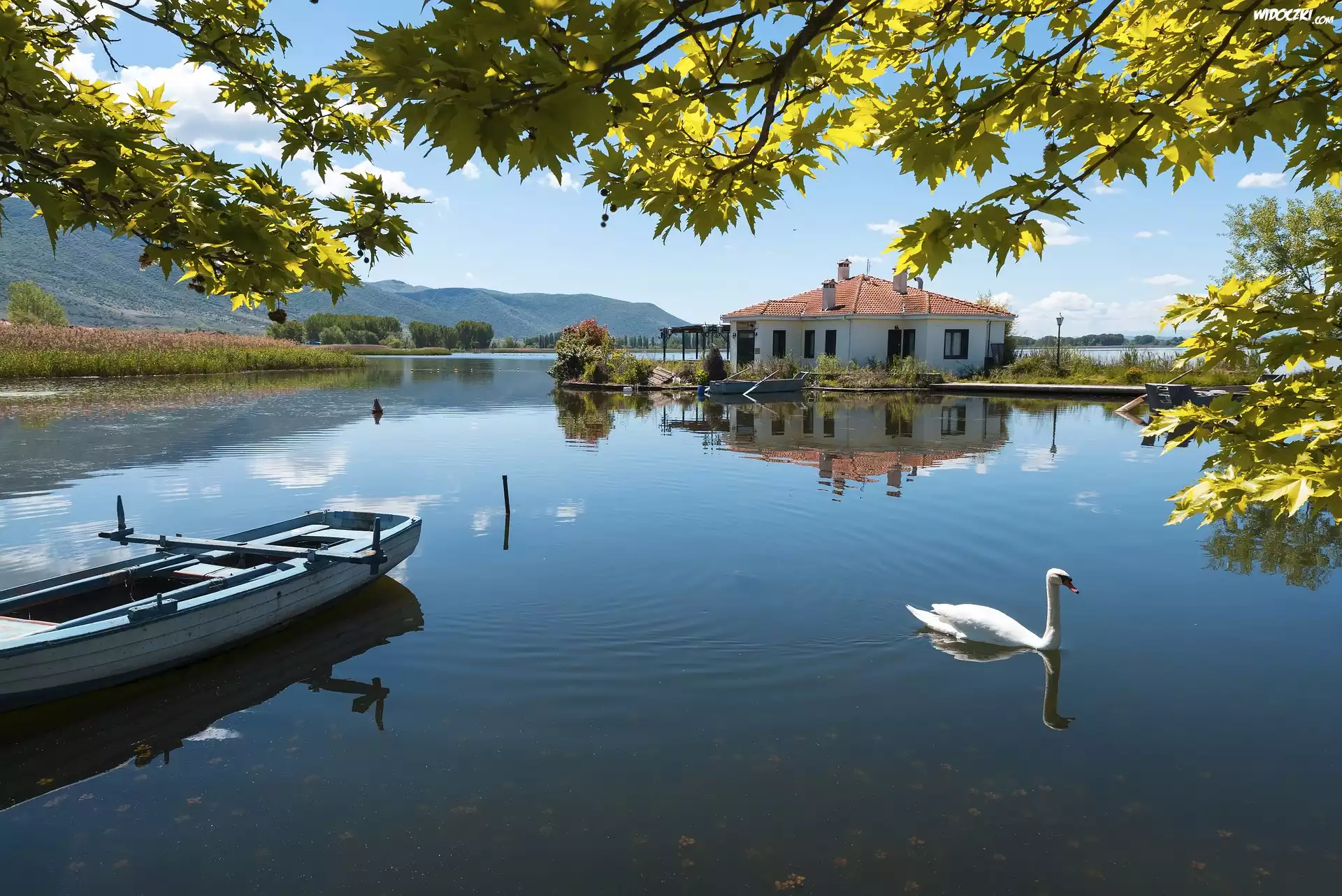 Zdjęcia, Łódka, Łabędź, Dom, Jezioro Kastoria, Grecja