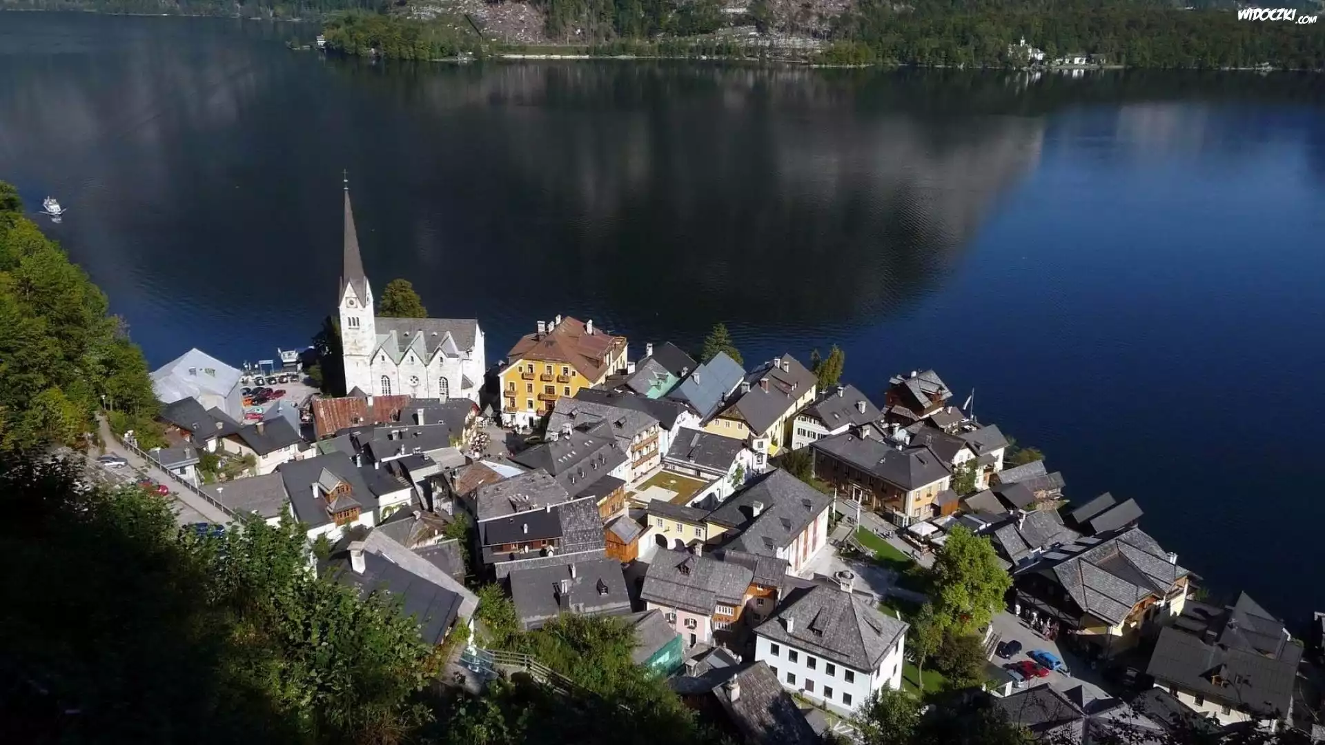 Zdjęcia, Jezioro, Domy, Hallstatt, Austria