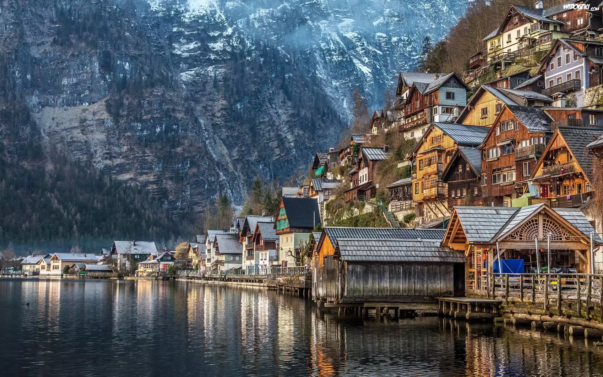 Zdjęcia, Jezioro, Góry, Miasteczko, Hallstatt, Austria