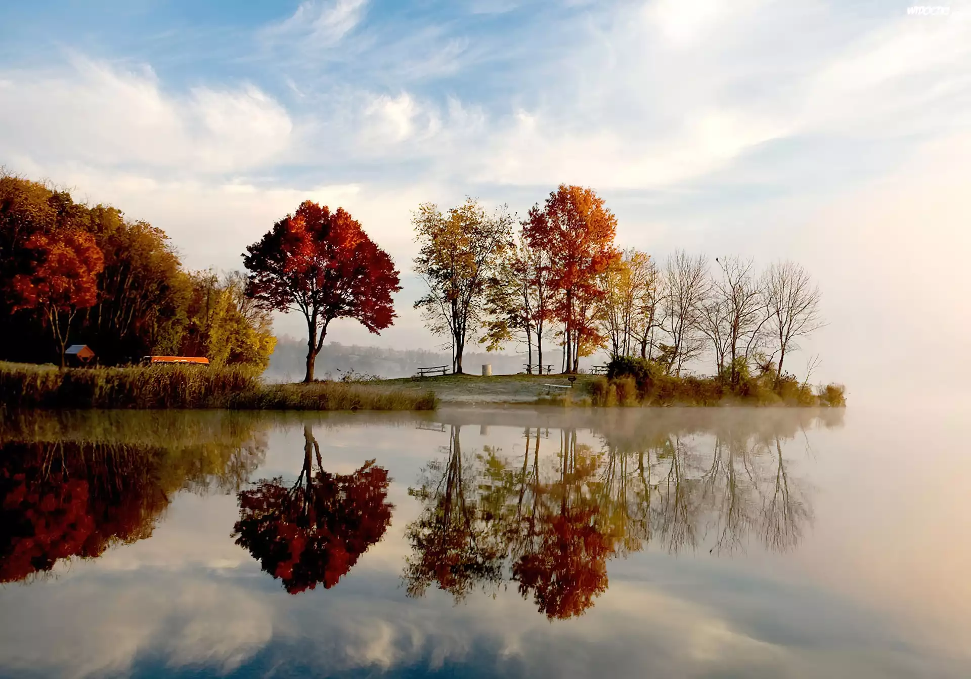 Zdjęcia, Jesień, Jezioro, Drzewa