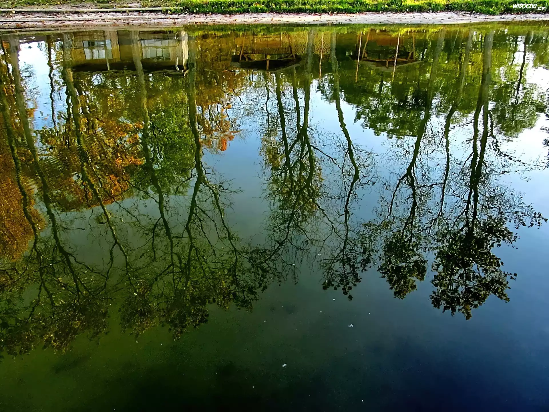 Zdjęcia, Jezioro, Drzewa, Jesień, Odbicie
