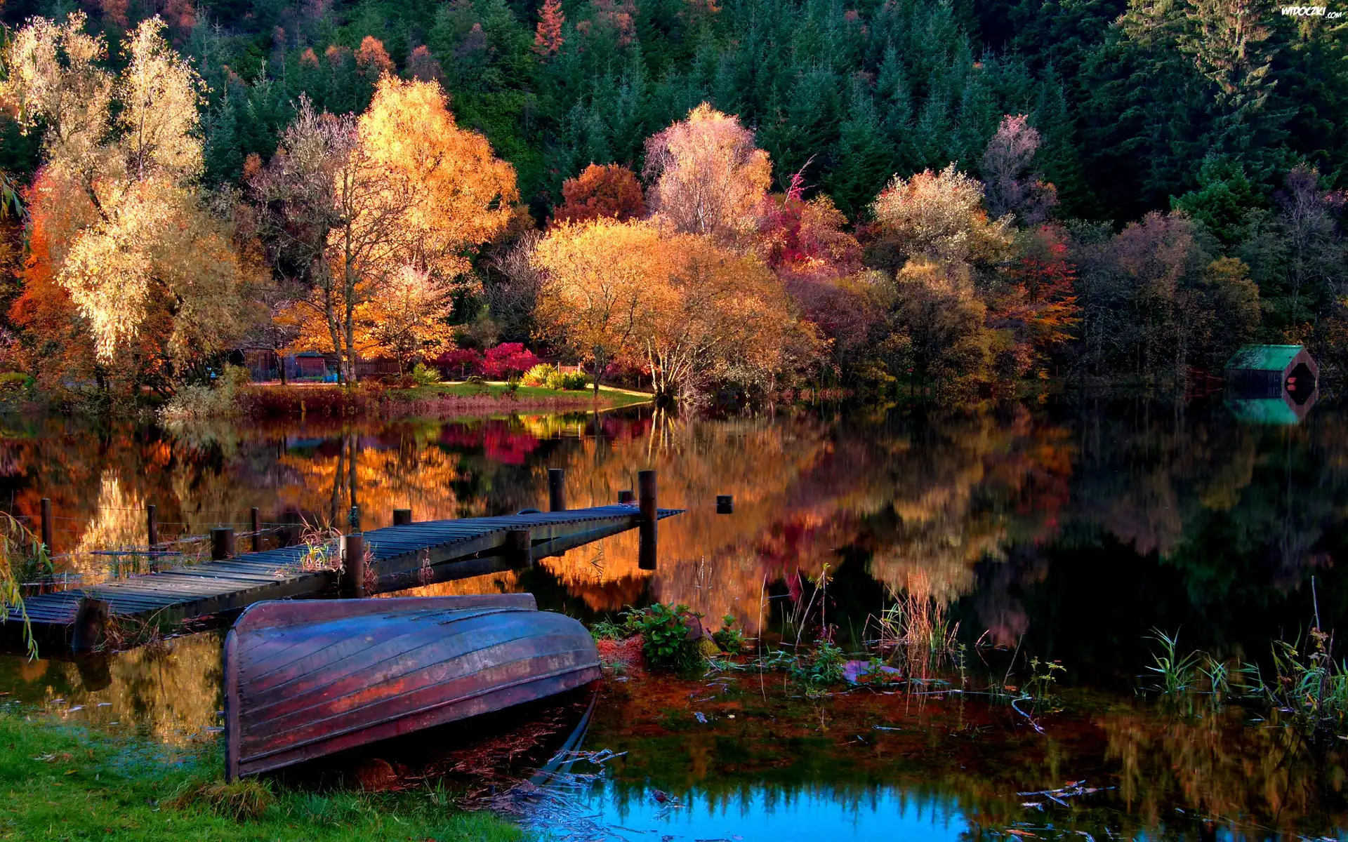 Jesień, Jezioro, Łódka