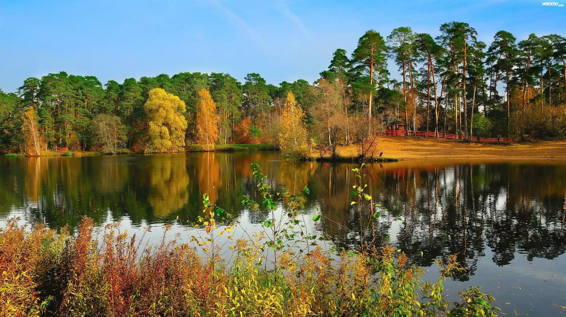 Jesień, Jezioro, Park