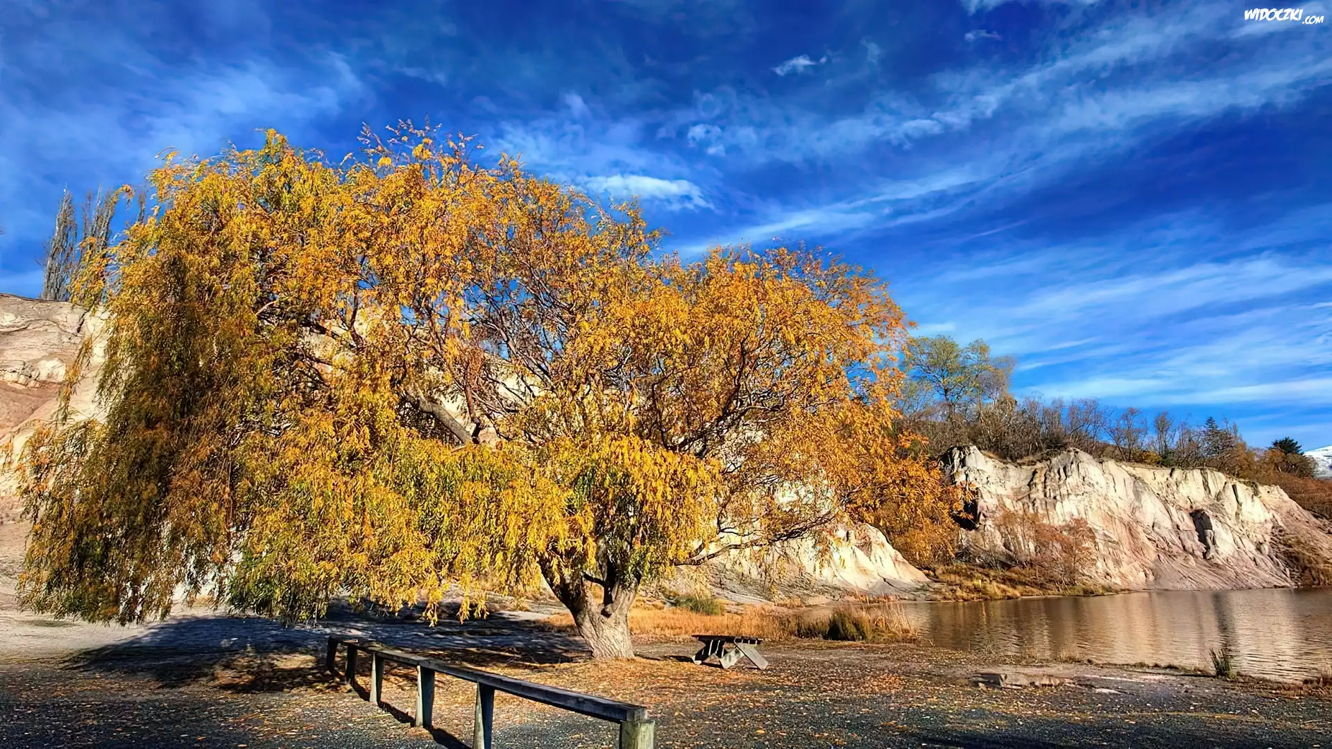 Zdjęcia, Jesień, Jezioro, Wierzba