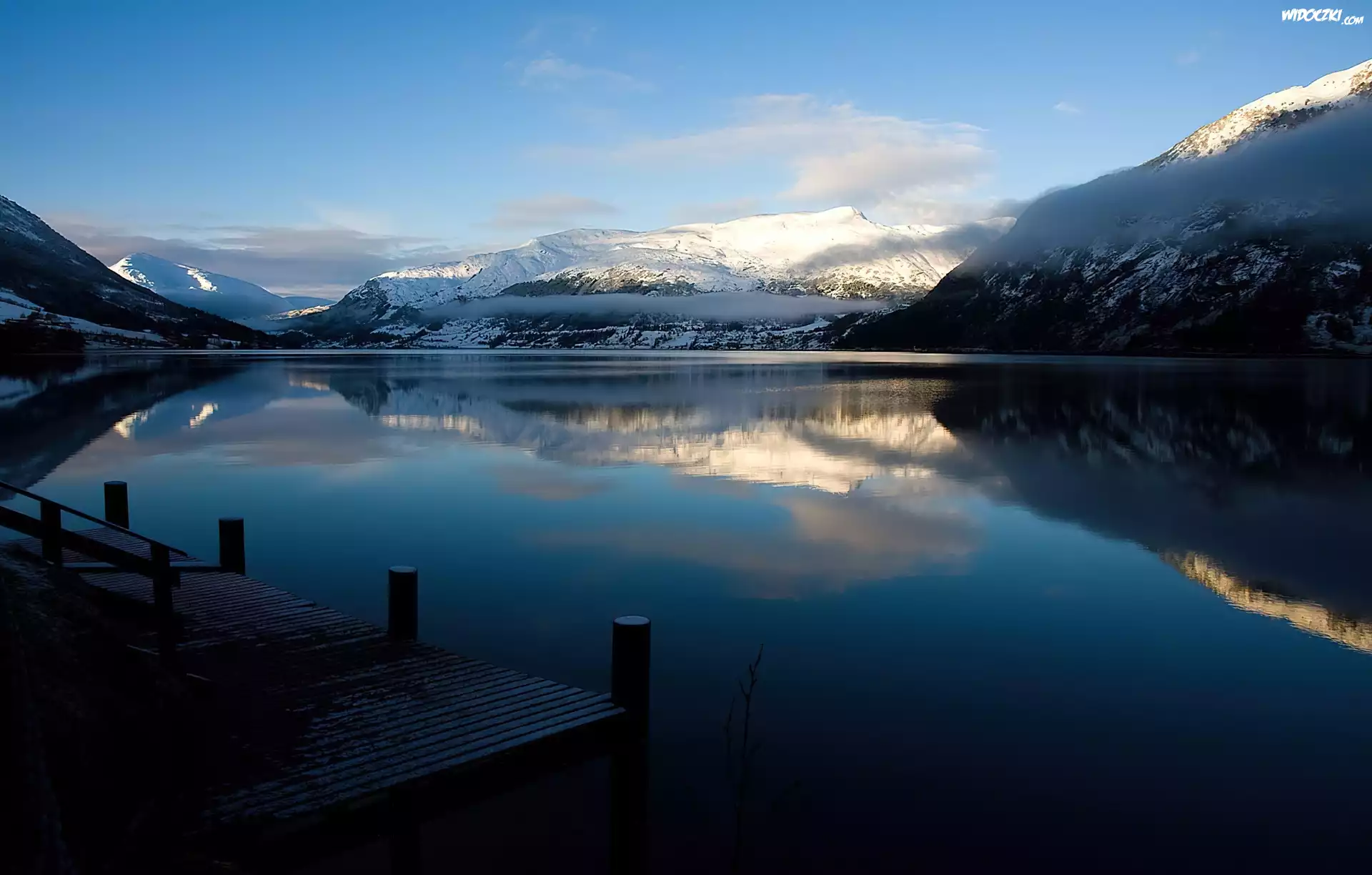 Zdjęcia, Jezioro, Góry, Pomost, Jolstravatnet, Norwegia