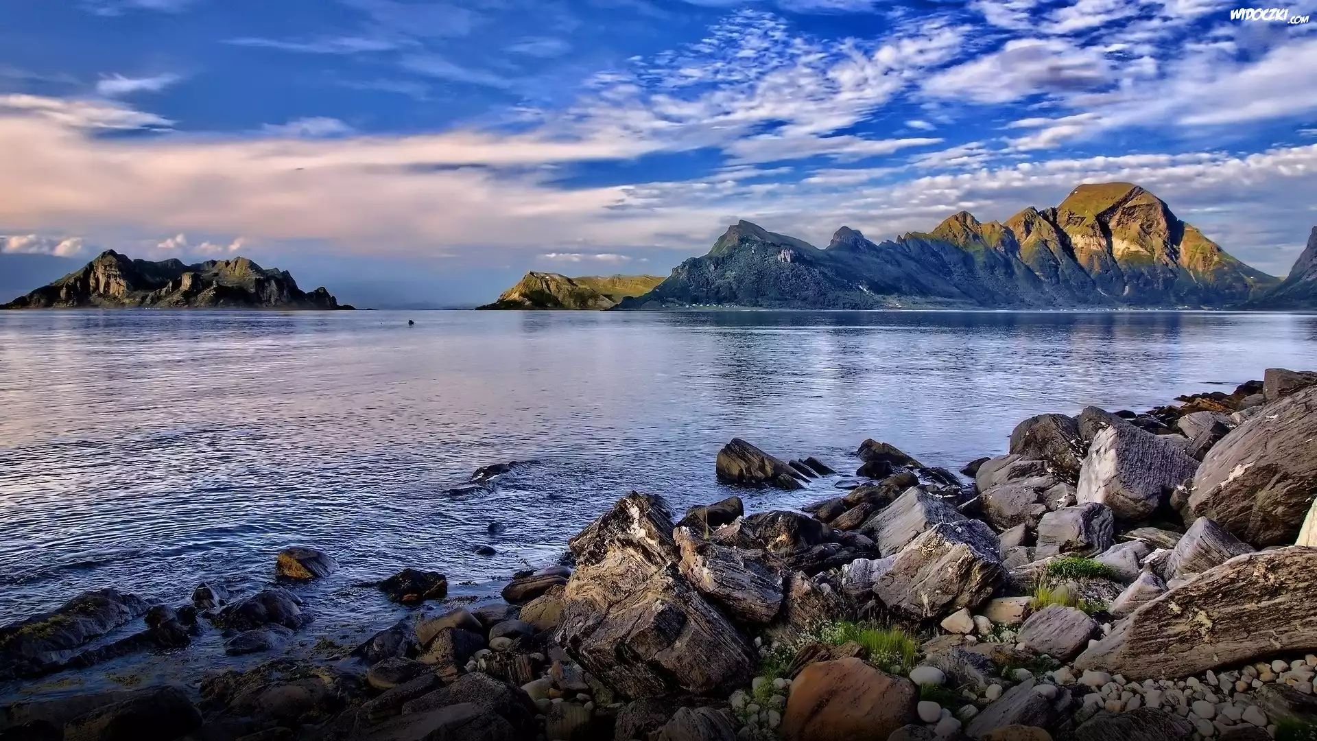 Zdjęcia, Jezioro, Góry, Kamienie, Chmury