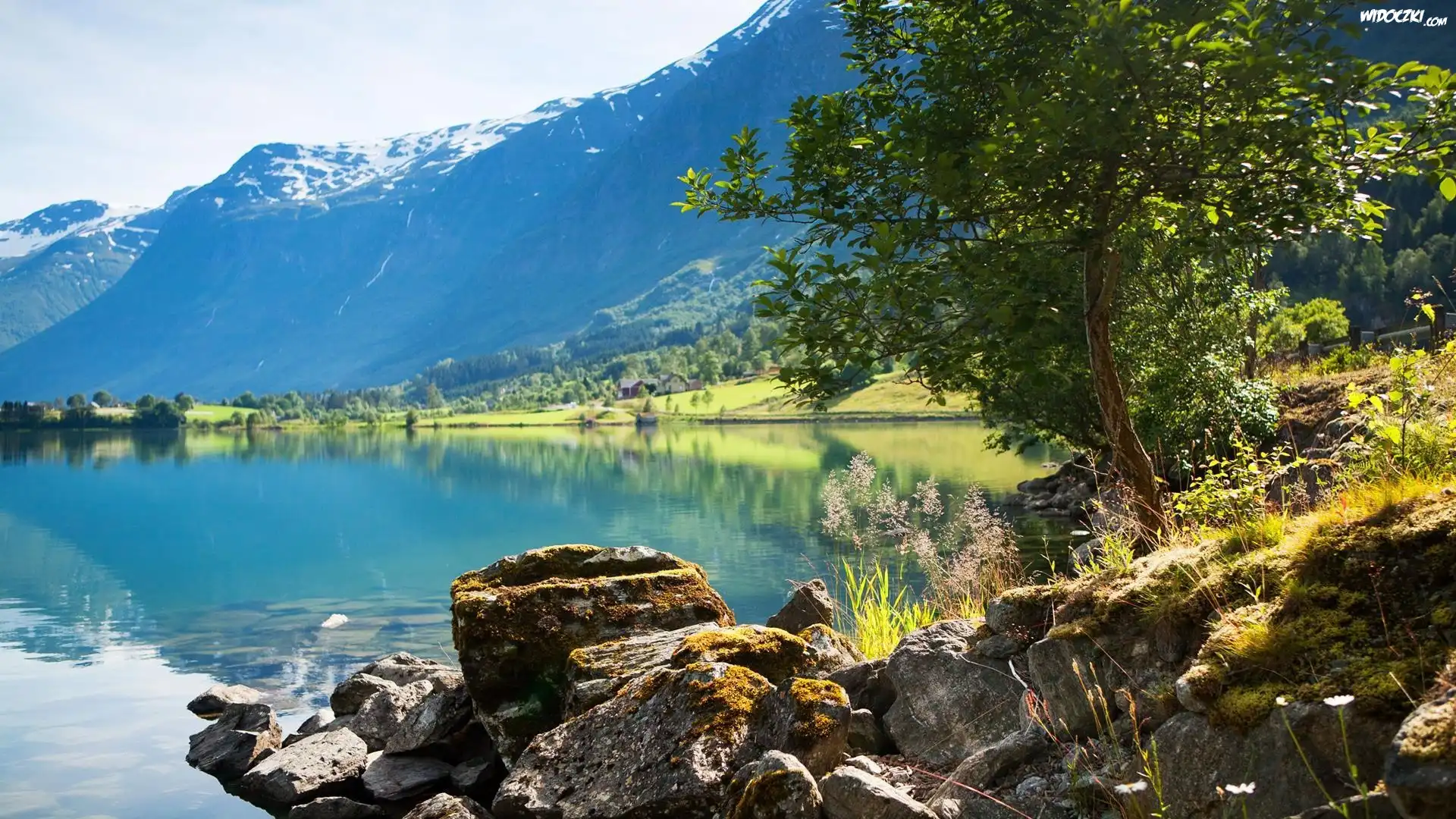 Zdjęcia, Jezioro, Góry, Kamienie, Drzewa