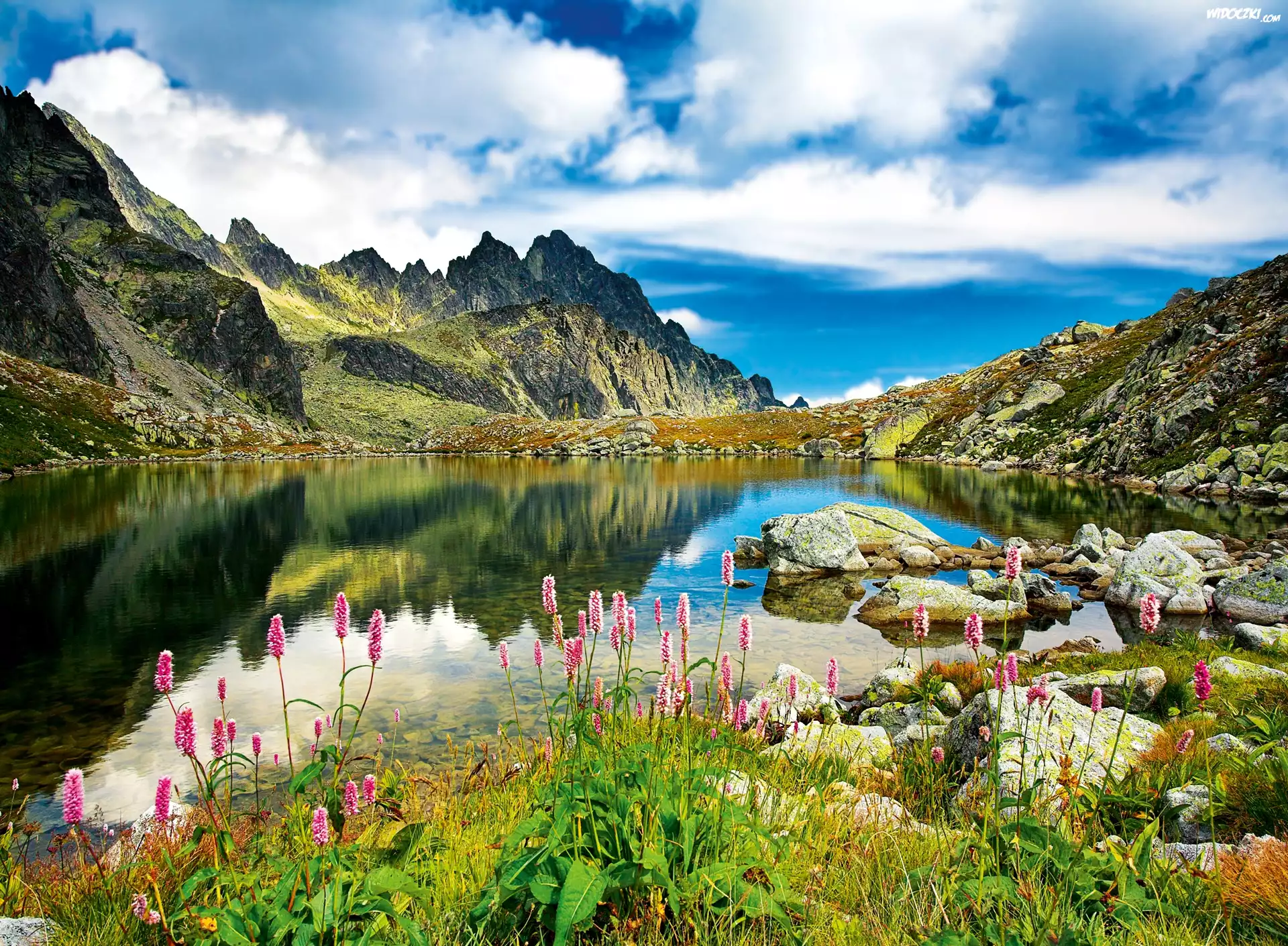Zdjęcia, Jezioro, Góry, Kamienie, Kwiatki