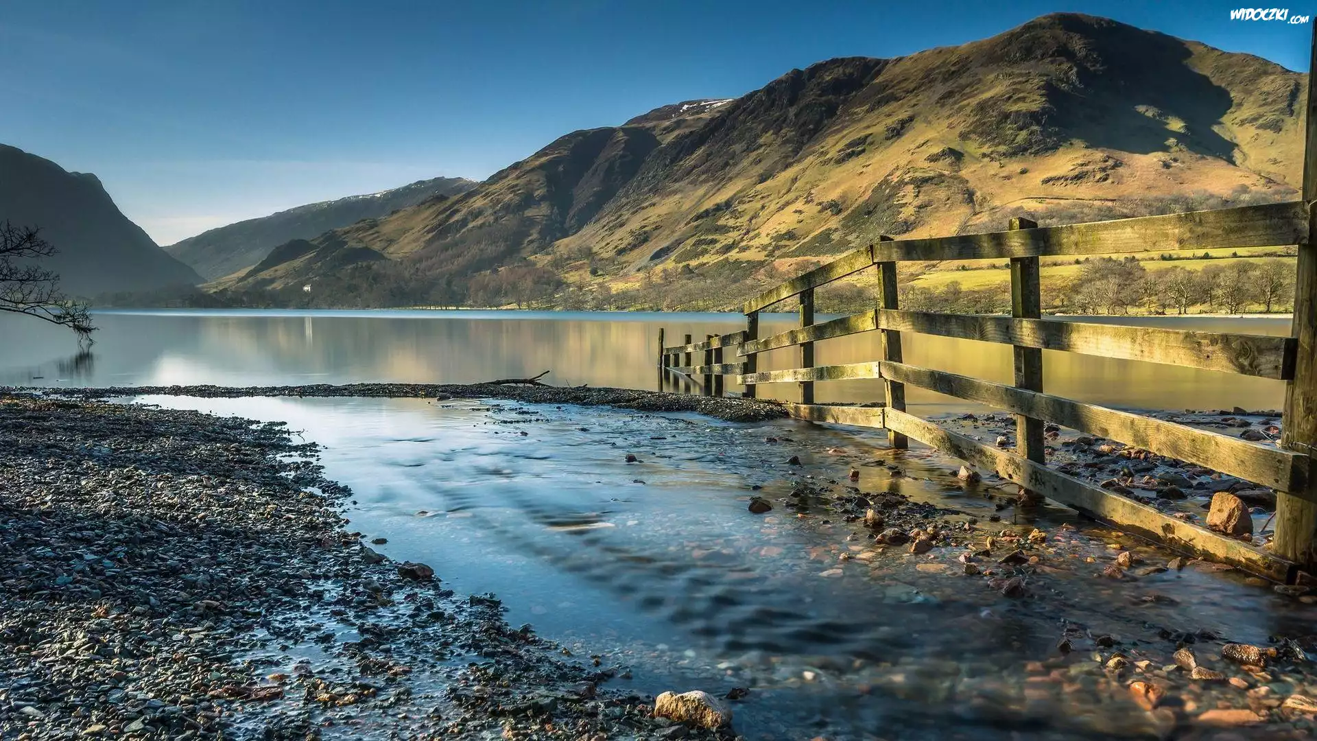 Zdjęcia, Jezioro, Góry, Kamienie, Ogrodzenie