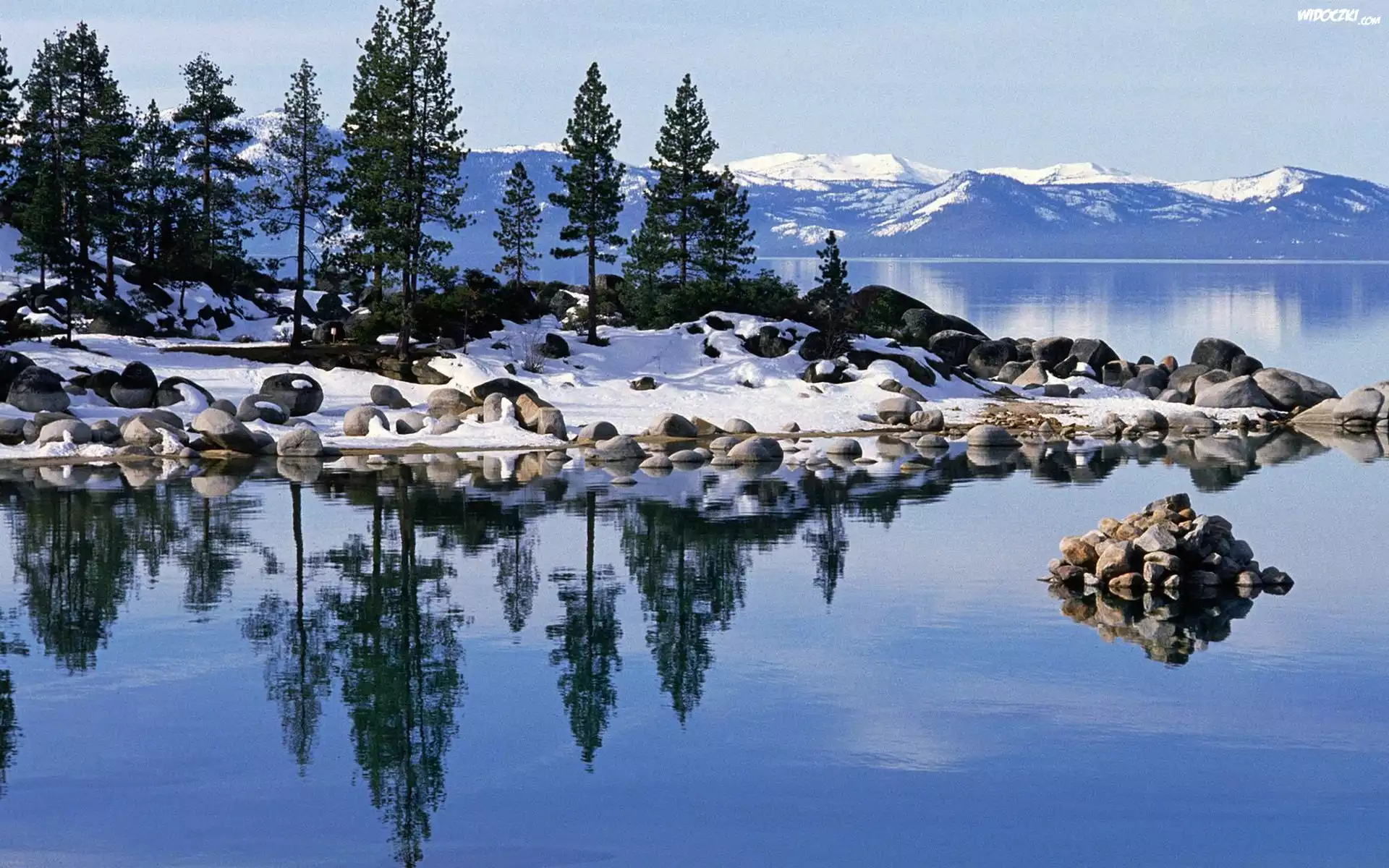 Zdjęcia, Jezioro, Góry, Kamienie, Zima