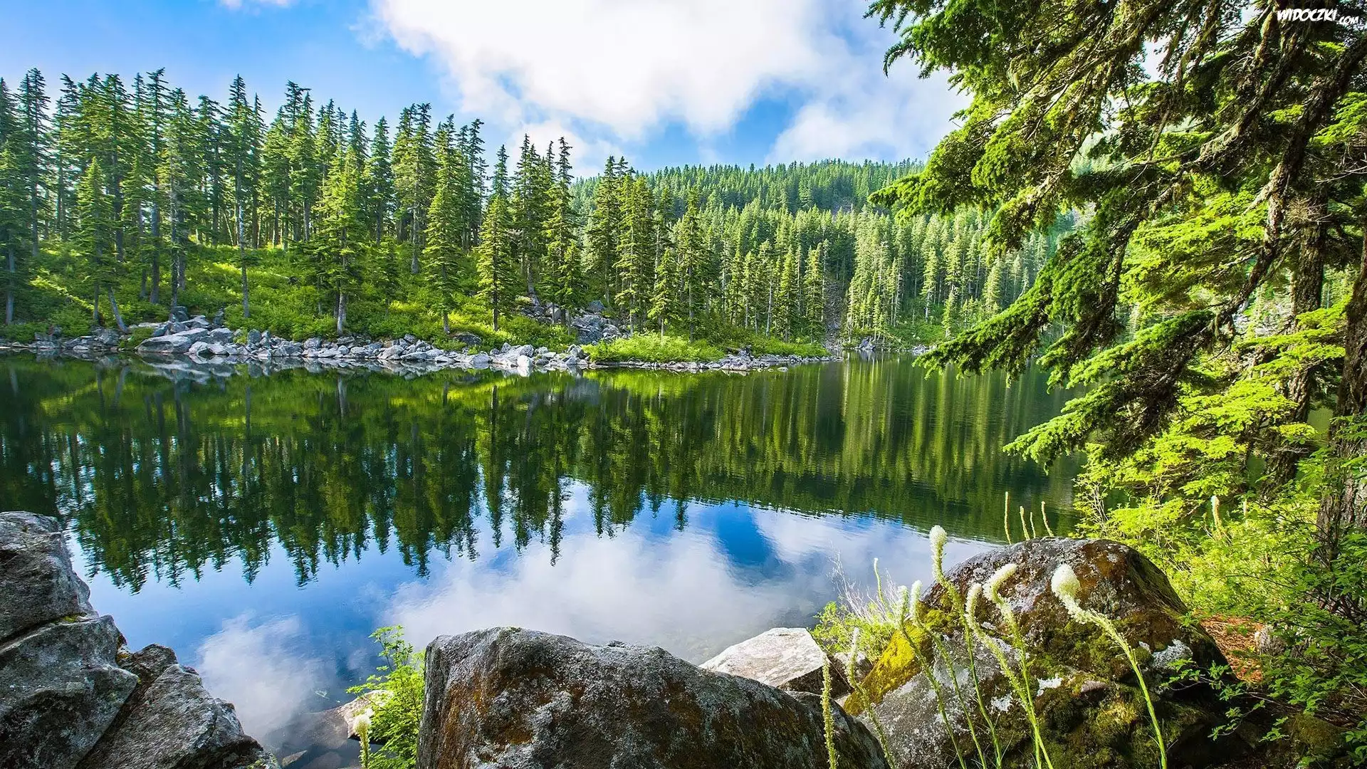 Zdj臋cia, Jezioro, Las, Kamienie, Odbicie