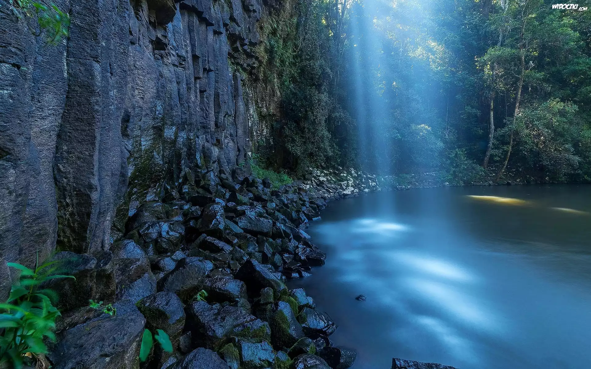 Jezioro, Przebijające, Światło, Kamienie, Skały