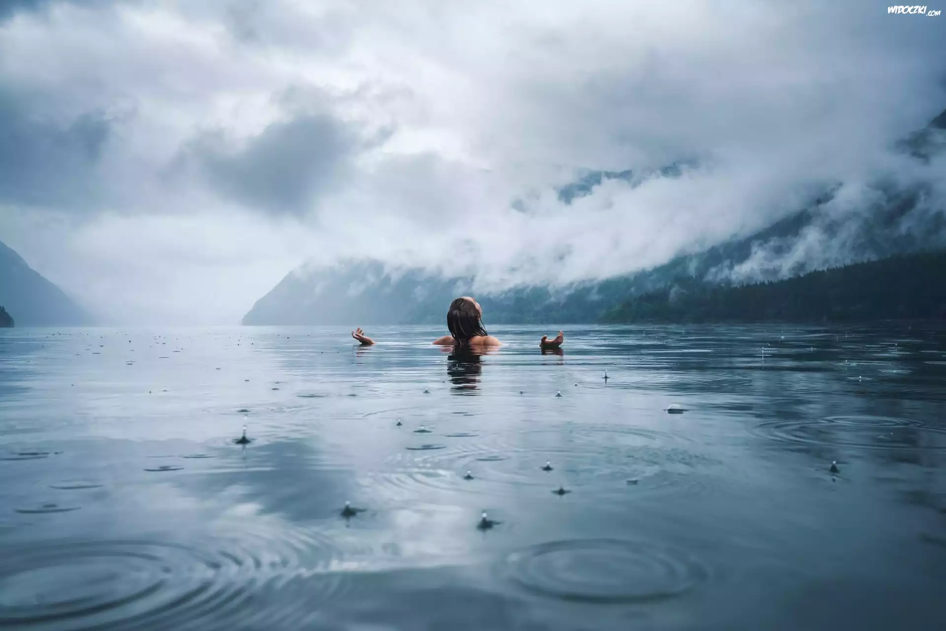 Zdjęcia, Kobieta, Jezioro, Góry