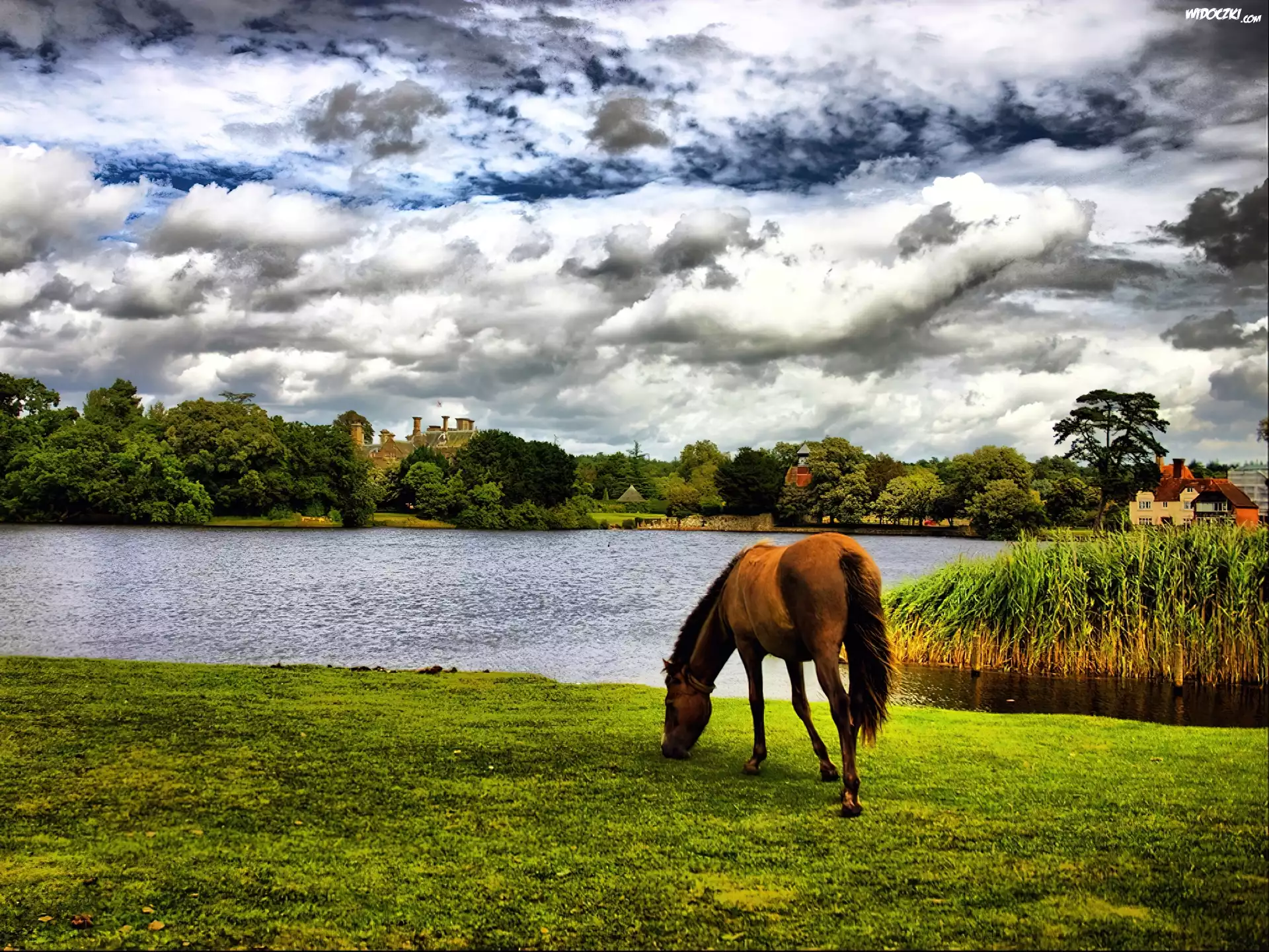 Zdjęcia, Koń, Jezioro, Chmury