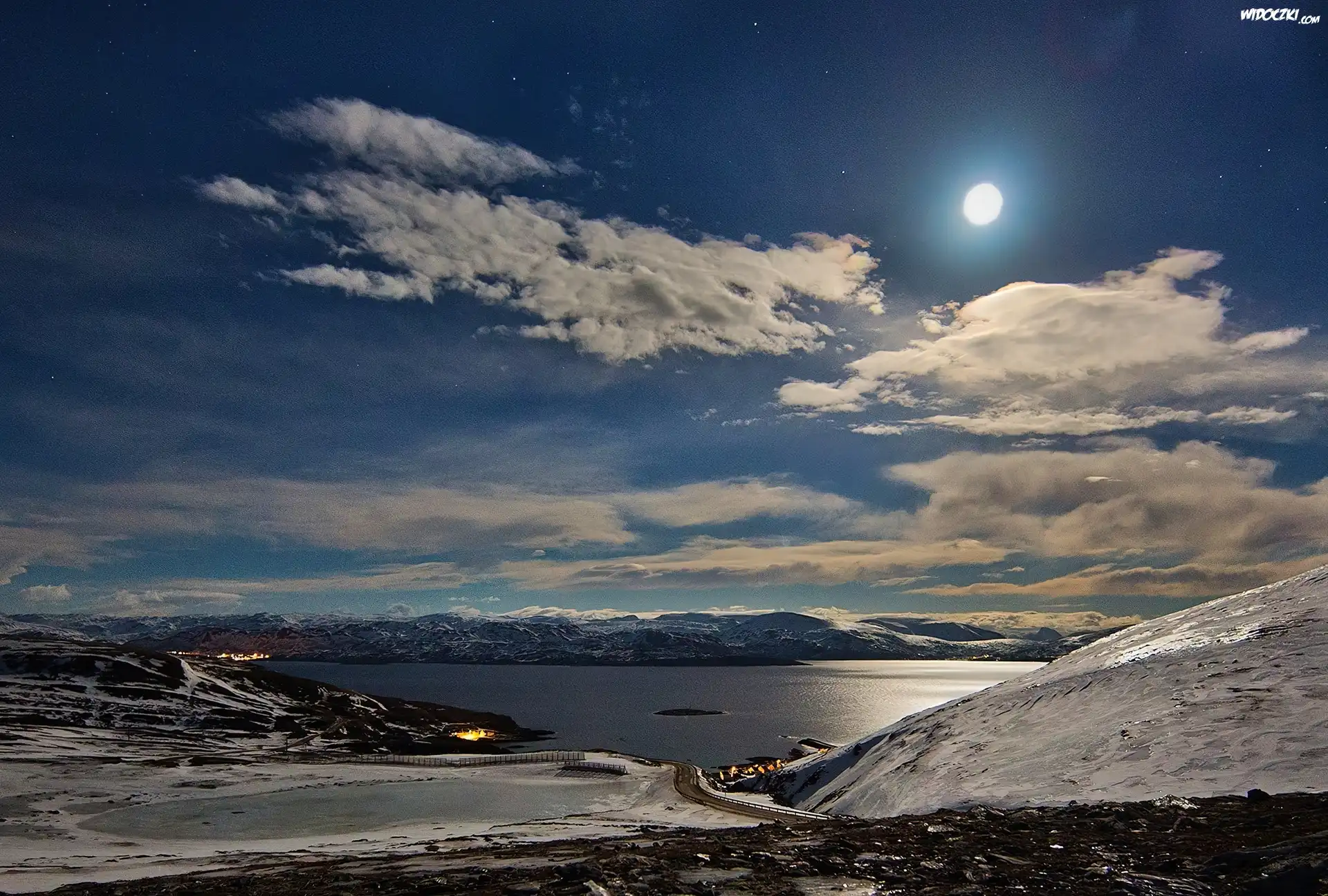 Zdjęcia, Jezioro, Noc, Księżyc, Góry