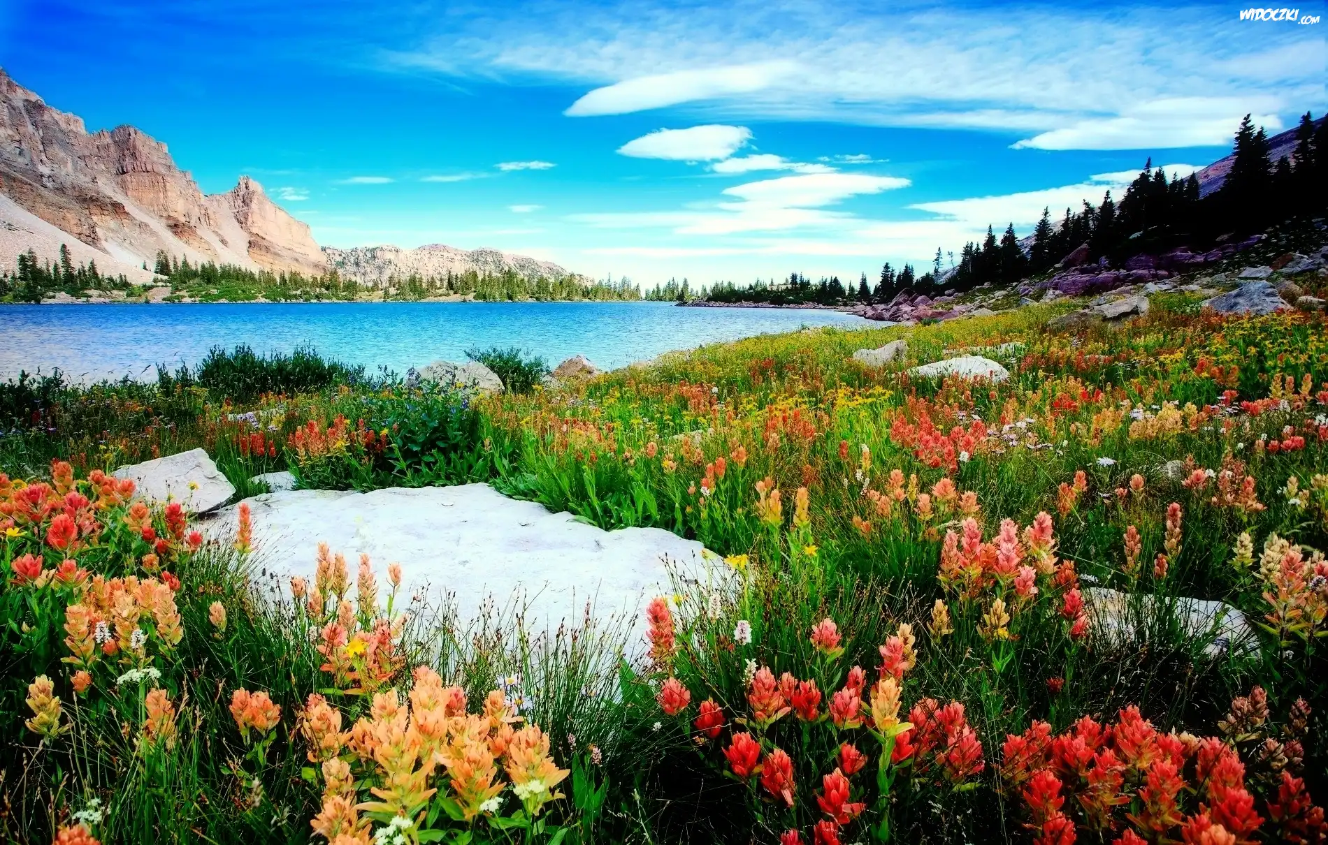 Góra Wiosna, Kwitnąca, Magnolia Widok, Z, Okna, Sad Góra, Jeziora Jezioro, Chmury, Odbicie Góra, Jeziora Ptak, Gałązka, Kwiaty, Jemiołuszka Góra Góra, Niebo Góra Góra Wiosna, Żółte, Kwiatki, Motylki, Biedronka Grafika 2D Wiosna, Park Jezioro, Chmury, Zachód, Słońca, Odbicie